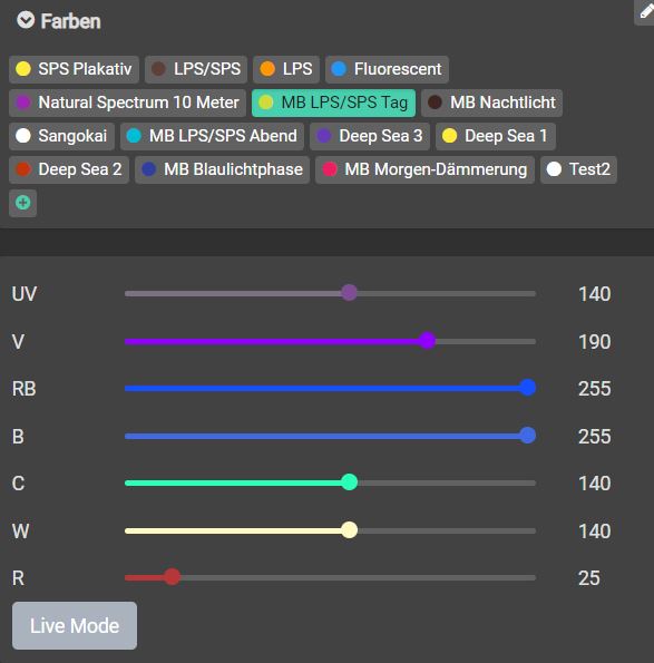 In der nächsten Zeit werde ich Tagesmaximalleistung noch etwas anheben und den UV und Violett Kanal minimal erhöhen... Fortsetzung folgt.