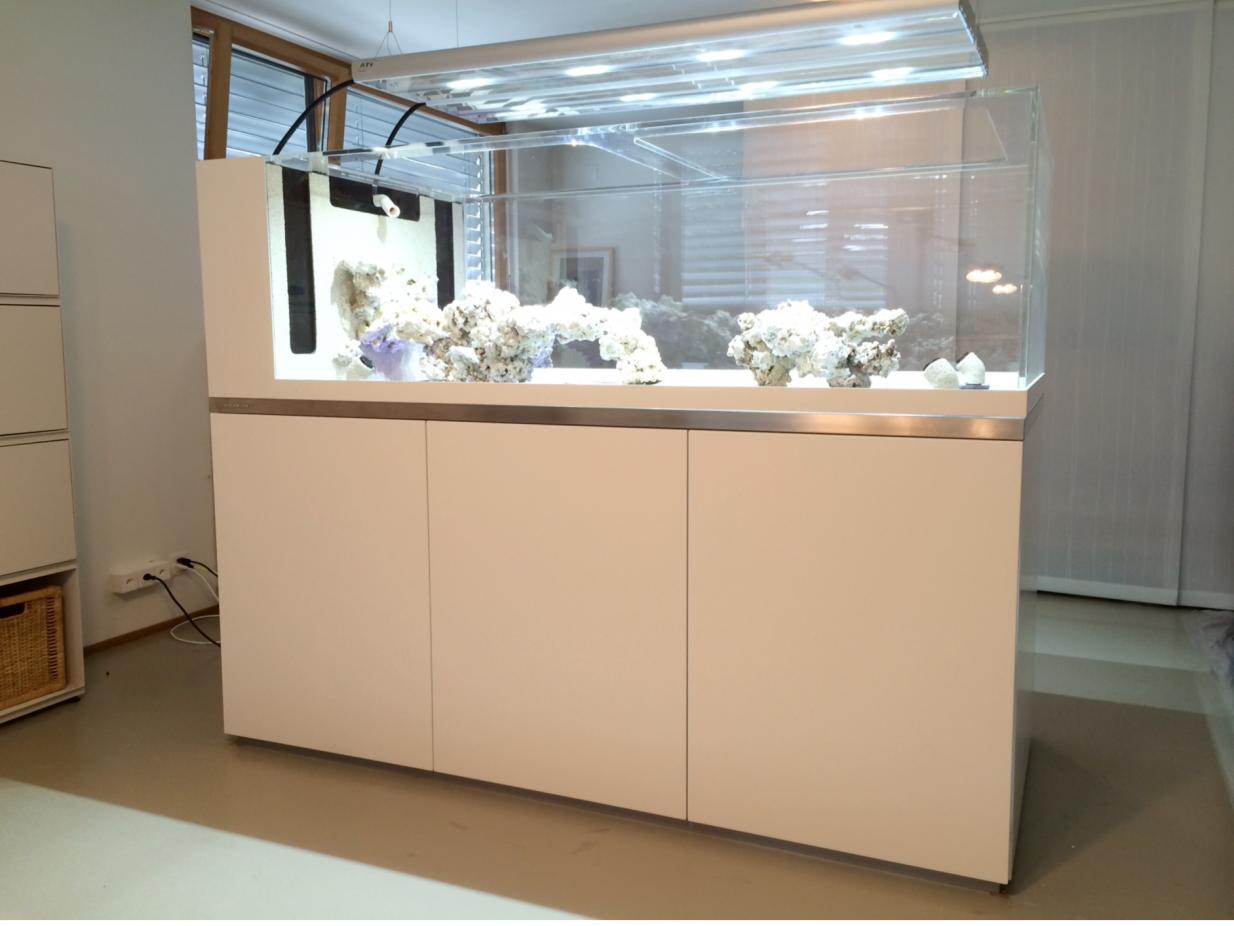 Hallo zusammen. Mein Name ist Markus und ich lebe in Basel in der Schweiz. Bitte entschuldige mein Deutsch, denn meine Muttersprache ist Englsich. Vor 1 1/2 Jahre habe ich mein Becken mit der Firma Seaplanet entwickelt und gebaut. Nach viele Variante habe ich mich für ein 1224 Liter (Brutto) Aquarium entschieden. Mein vorheriges Aquarium war ein 580 Liter Becken. Es lief eigentlich sehr gut aber ich wollte etwas vergrössern. Meine wirkliche Passion sind SPS Acroporas und deren Farben. Weiss aber auch wie Heikel es ist die Farben konstant zu halten. In den sieben Jahren seit ich zum Hobby kam, habe ich einige Systeme getestet, bin aber von Sangokai am meisten überzeugt. Das neue Aquarium läuft seit Beginn auf Sangokai. Es ist ein Nährstoffarmes Becken aber weil ich ein gemischtes LPS SPS Becken mag, sind die Werte über null.