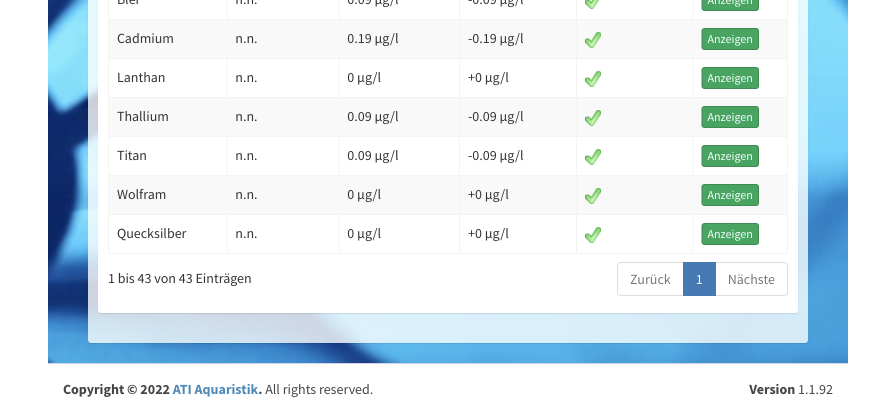 Aluminium ist einem völlig normalen Bereich und unproblematisch. Typischerweise kommt Alu aus Riffzement oder künstlichem Dekorationsmaterial. Aber der Wert ist normal und gut. Das Silikat sollte schon so gut wie möglich raus, bei einer hohen Ausgangsbelastung sind das manchmal nicht unerhebliche Mengen an Harz was man noch nachschalten muss. Silikat ist erst einmal nicht schädlich oder giftig, kann aber eben Kieselalgenwachstum fördern und manchmal gibt es auch Cyanofälle in Kombination mit Kieselalgen. Aber am Besten wie gesagt so gut es geht entfernen.