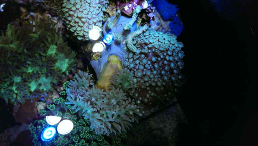 Bloß die margeritenkoralle macht mir Bedenken, die fühlt sich sehr wohl und dehnt sich sehr stark aus. Die konnte rasch zu groß werden.