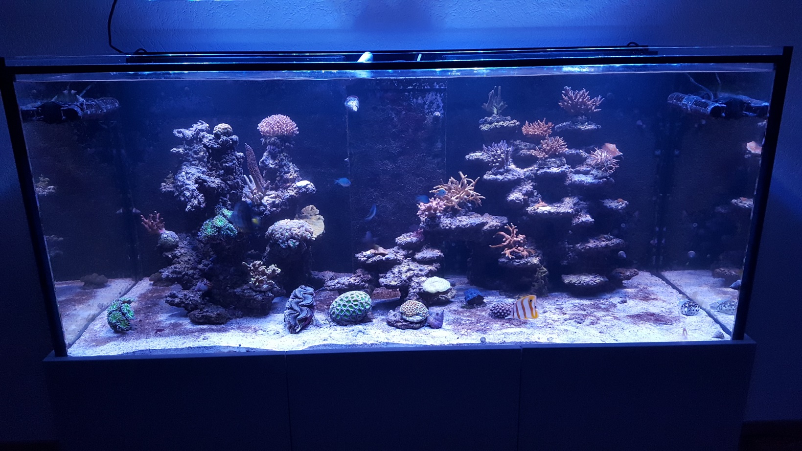 2 * AI 52 HD Beleuchtung + 4xT5 , Strömungspumpen : 2 Tunze Stream 3 , 25 Watt Debary , Skimz Algenfilter ,