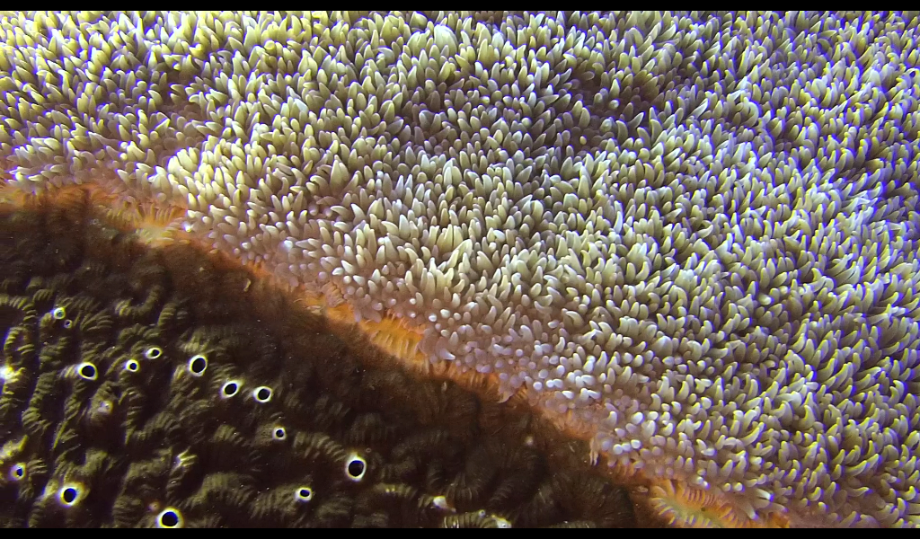 Es ist nur diese Koralle - PO4 ist immer um die 0,04 rum. In der Mitte bleicht die aus.. mittlerweile hat es gestoppt.