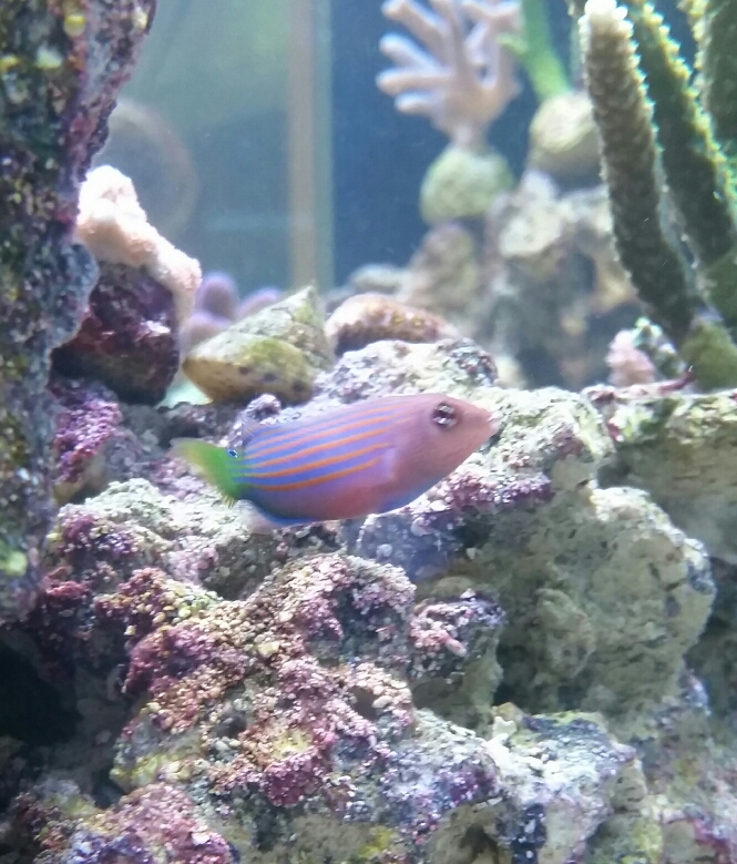 Mein Azur-Riffbarsch hat es leider nicht geschafft, sein Artgenosse hatte ihm schon zu sehr zugesetzt gehabt. Ihm fehlten schon die Flossen und Futter hat er auch keines mehr Angenommen.