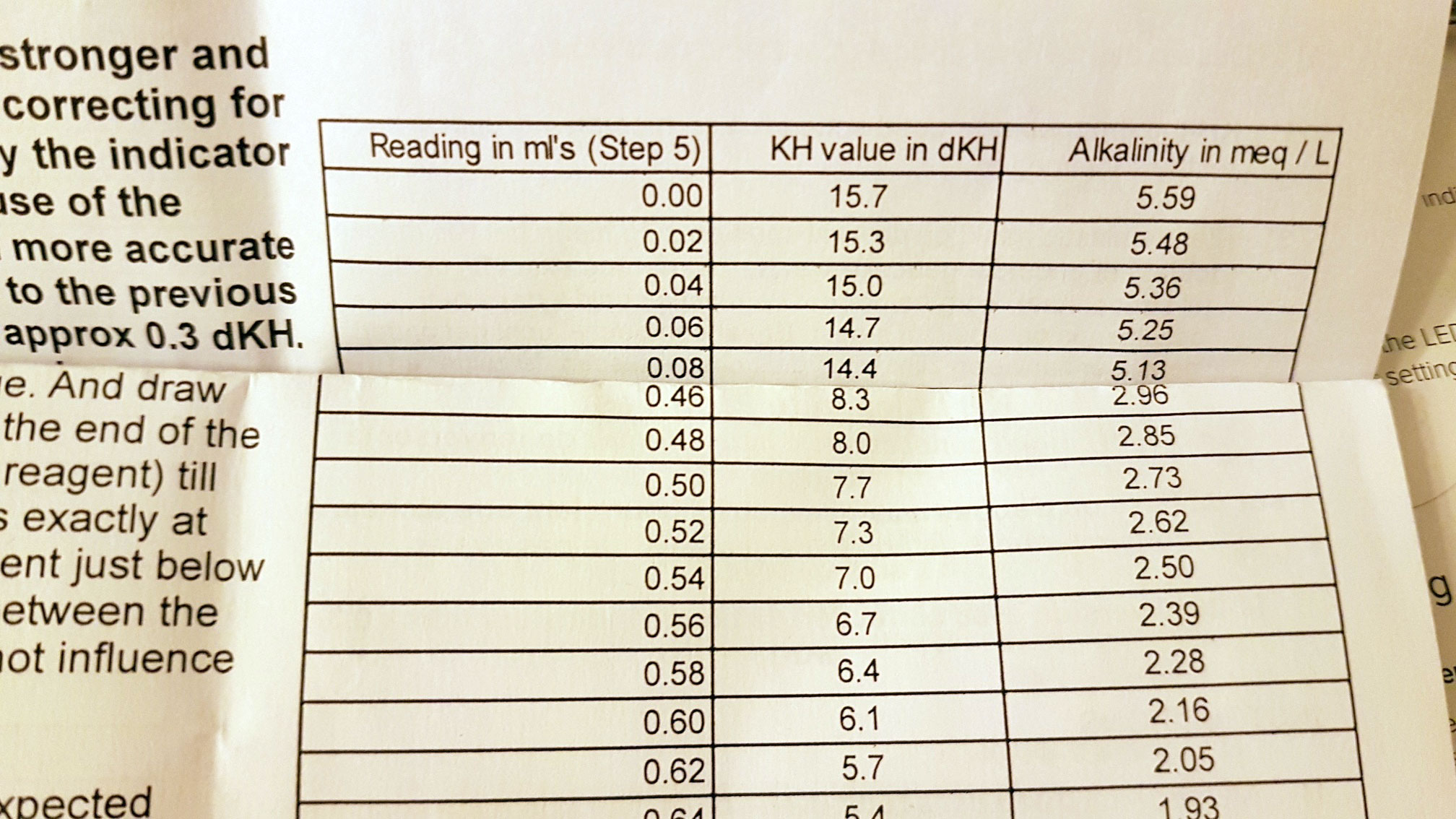 (lege noch ein Foto von der Salifert Tabelle bei)