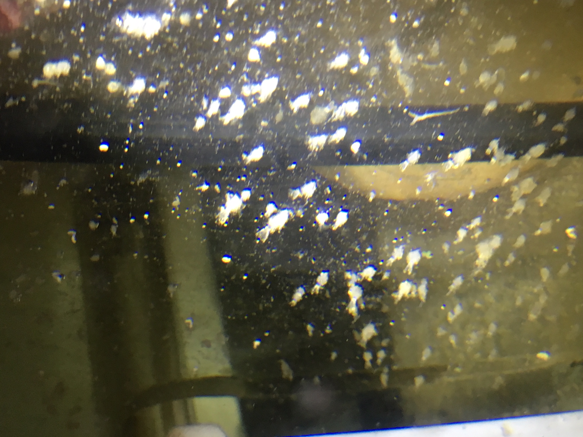 weiß jemand, was das sein könnte (siehe Fotos)? Habe ich gerade im Technikbecken an den Scheiben entdeckt.
