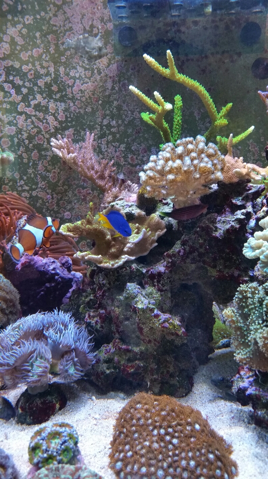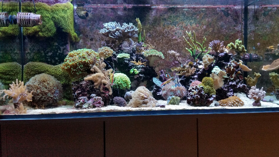Bis auf ein paar Cyanos habe ich eigentlich keine Probleme. Mein Ca Wert schwank im Moment ein wenig, das kommt aber noch von der Entnahme meiner Orgelkoralle und 4 ihrer Ableger. Darauf hin stieg er unbemerkt an (war mein Fehler) und habe seitdem etwa schwierigkeiten ihn wieder ins Gleichgewicht zubringen. Aber mit der Zeit wird das wieder.