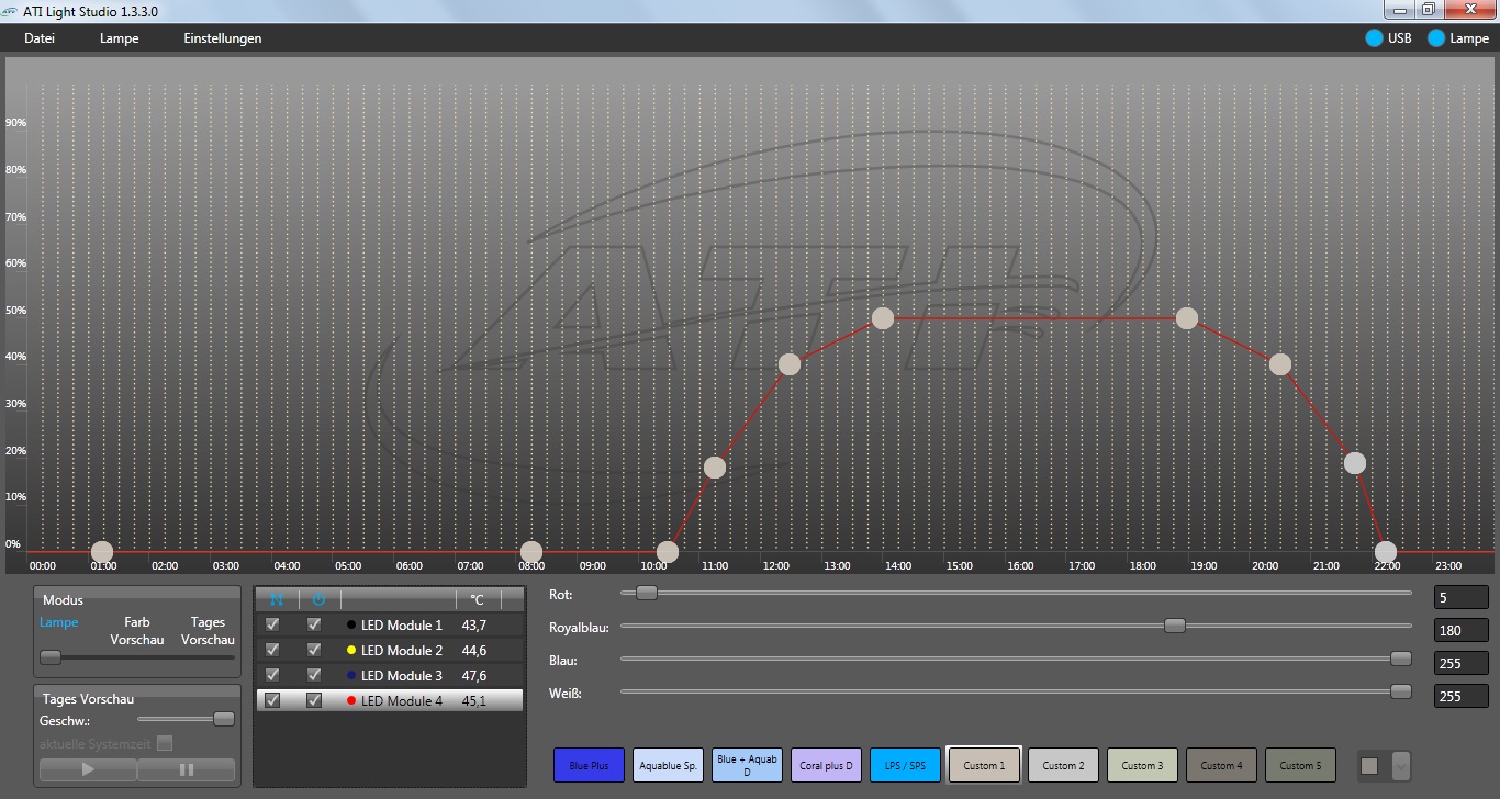 Licht ist nicht in Blauphase, Blauphase gibts eig gar nicht. Ich fahre von Morgens bis Abends einfach die gleiche Einstellung.
