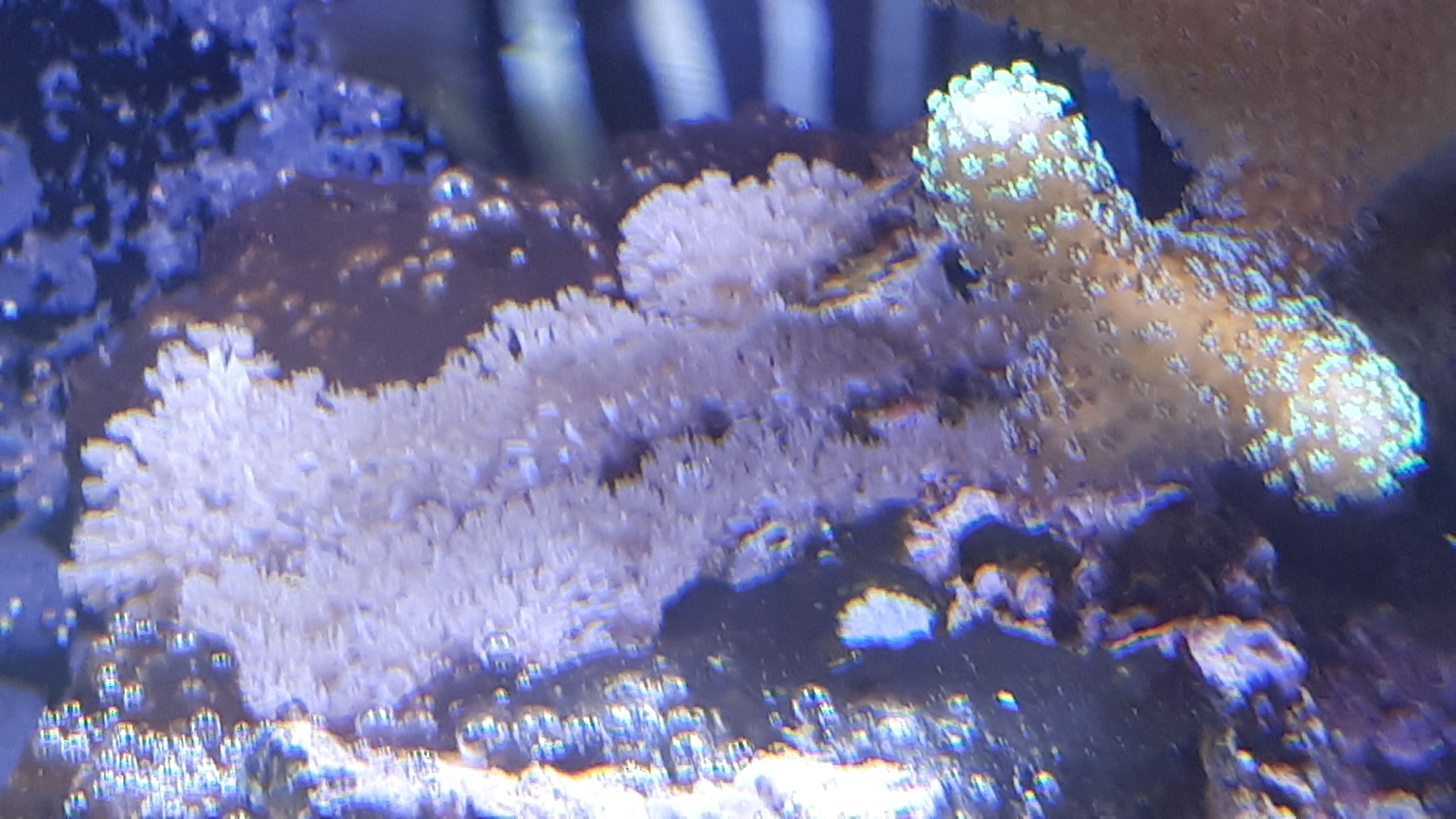 Ich habe seit neuestem eine neue Koralle (wahrscheinlich irgendwie eingeschleppt). Das Zeug überzieht alles und schaut ähnlich wie Xenien aus, pumpen jedoch nicht. Ist wie ein Teppich der sich langsam und stetig immer weiter ausbreitet.
