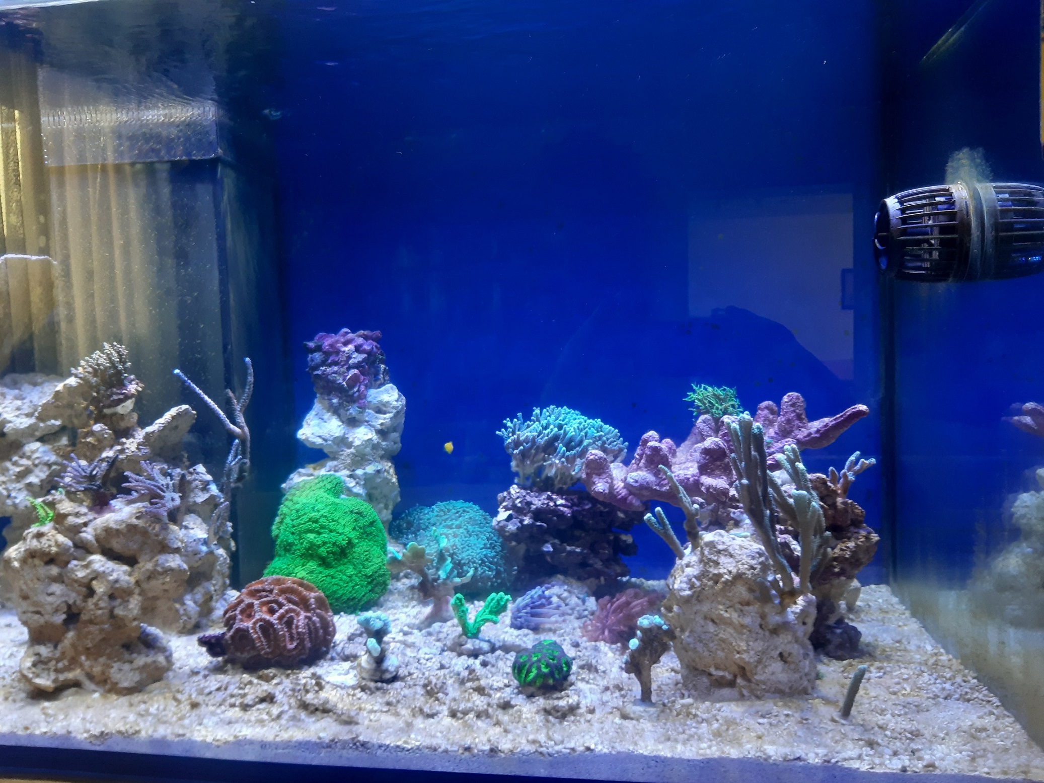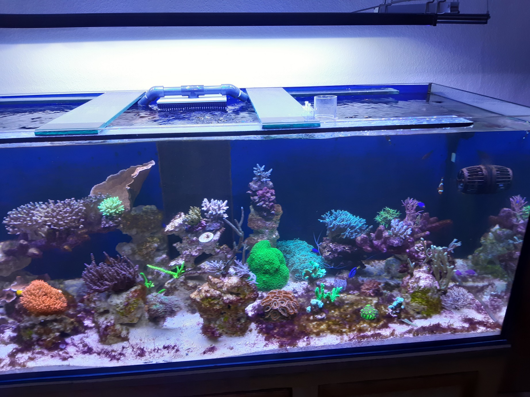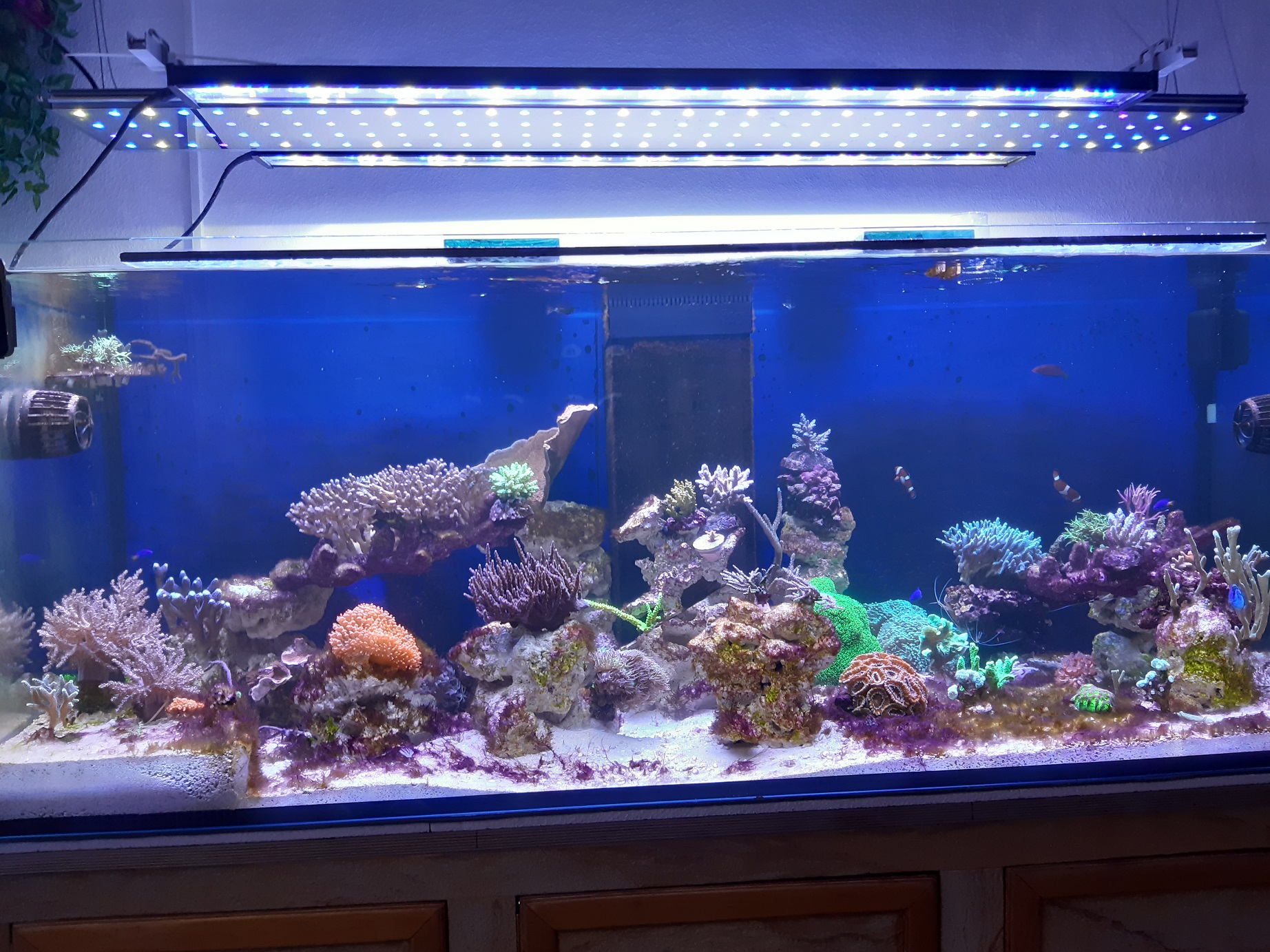 daneben gehangen ( mit der Einstellung vom alten Becken ). Jetzt ist das Licht angenehmer und den Korallen scheint es auch besser zu gefallen.