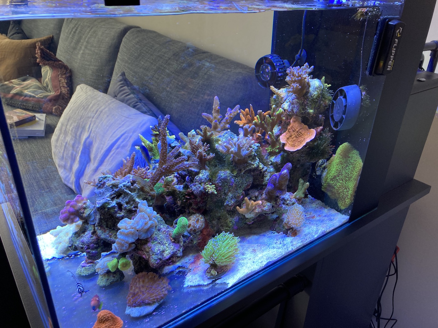 Das Wasser ist sehr klar. Die neuen Schnecken fressen zwar immer noch keine Bryopsis aber dafür alle anderen Beläge. Die Rückscheibe und Pumpen sind blitzeblank ohne mein Zutun.