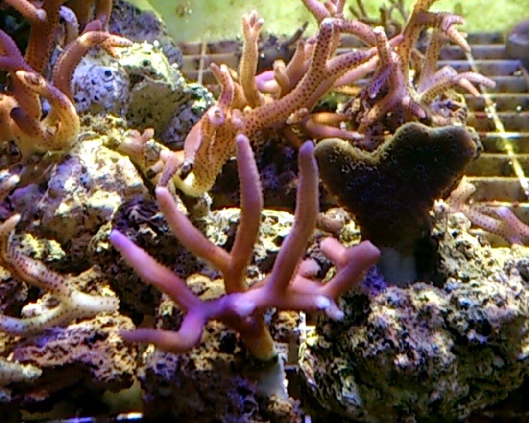 Man sieht wie die meisten Korallen gut stehen, manche Acropora aber Probleme mit ihrer Farbigkeit haben. Ich hoffe das wird mit sinkendem Phosphatwert besser.