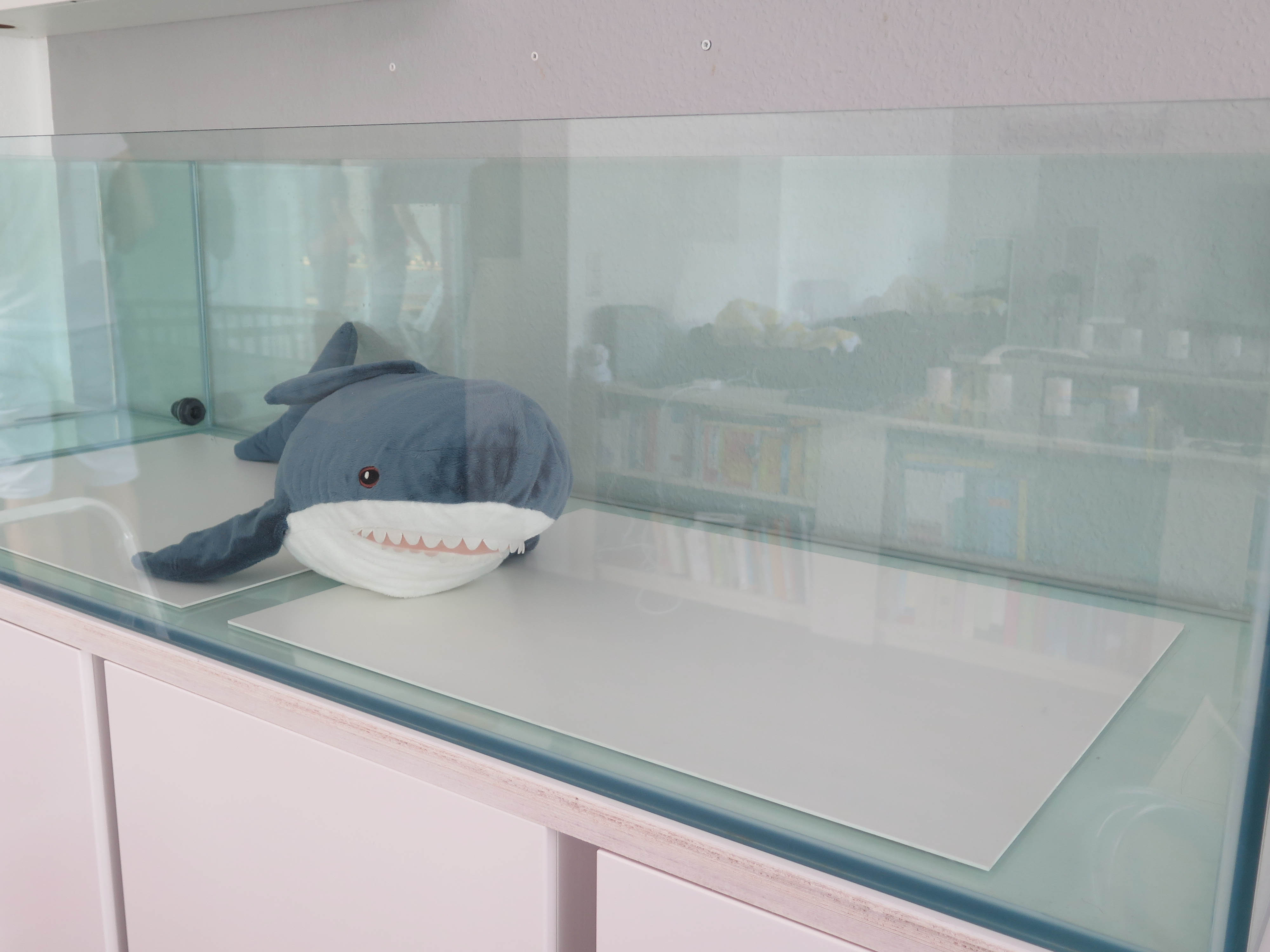 Bei 190 ist noch eine durchgehende Scheibe verklebt, dahinter ist das Technikabteil. Der Wasserstand ist bei 45cm. Passt alles ;)