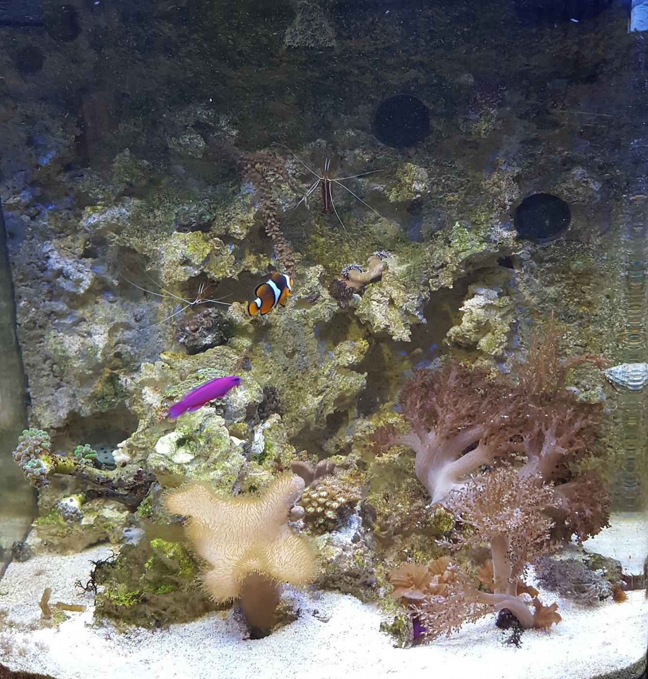 Die Scherengarnelle habe ich vor kurzen das erste Mal gesehen. Die ist also ziemlich scheu. Die Anemone wurde immer kleiner. Irgendwann war Sie einfach weg. Keine Ahnung warum. Allerdings haben die Clowns die nicht mal angesehen. Eigentlich würde ich gerne eine einsetzen, aber so recht traue ich mir das nicht.