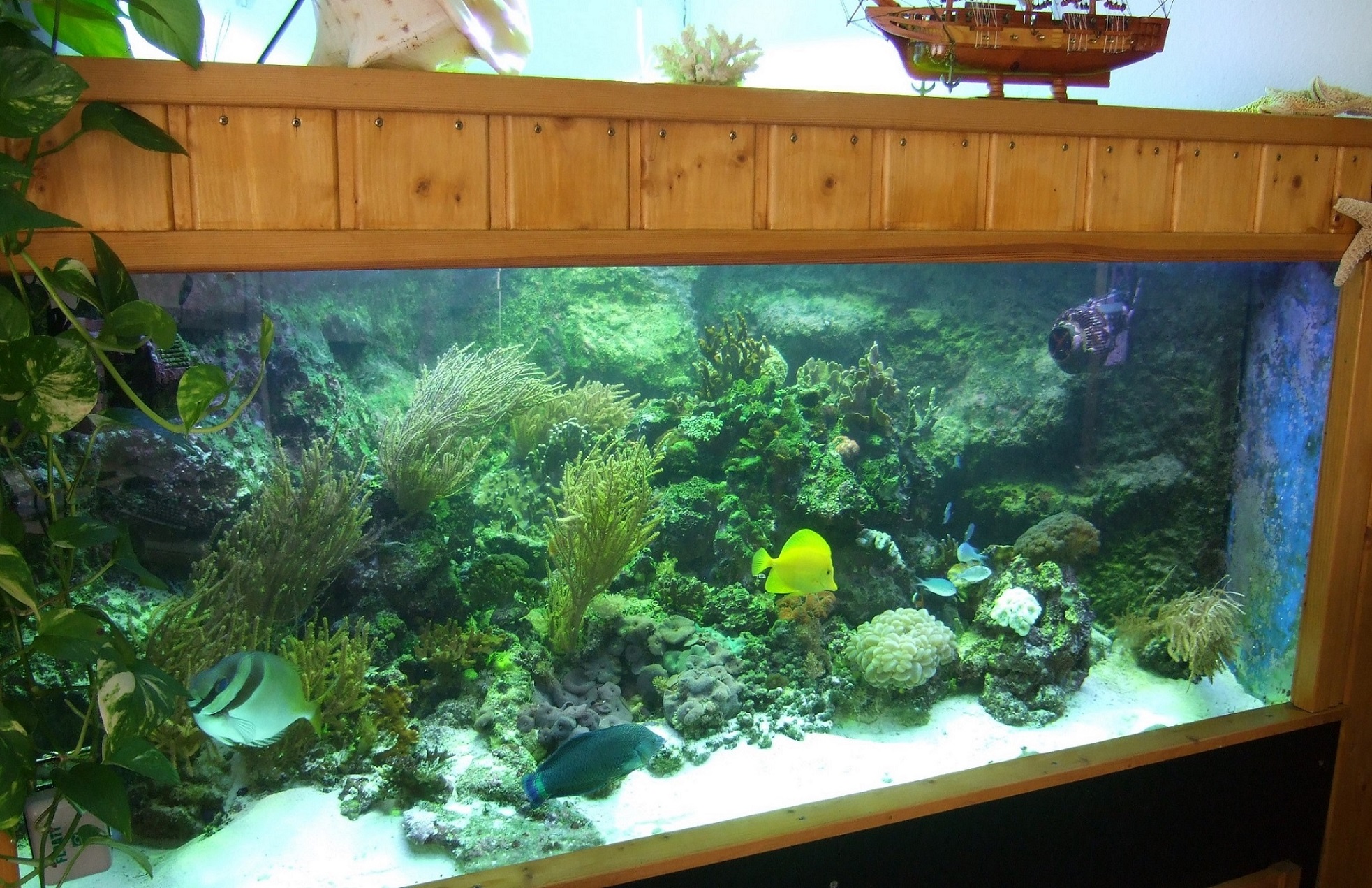 Ich habe mal ein Bild von der Meduse (Kranzqualle) beigefügt. Die Qualität ist bescheiden, aber die Teile sind in Natura nur ca. 1-2 mm groß. Dann habe ich noch ein Bild von meinem alten Becken gefunden. Das Bild ist in der Einlaufphase gemacht wurden, also schon etliche Jahre alt.