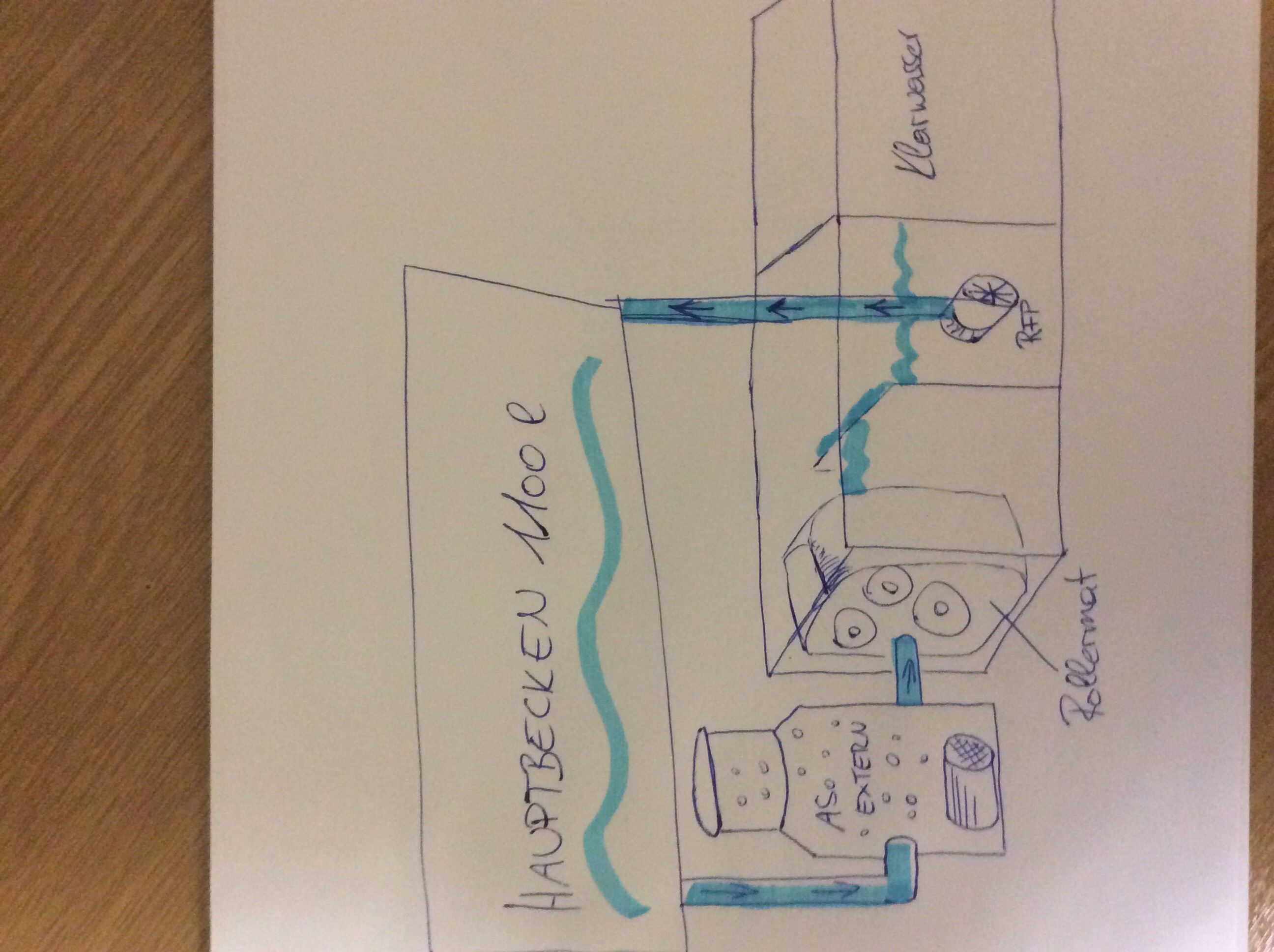 so ich hab mal eine ganz simple Skizze gemacht vielleicht könnte diese version rein mit den gefälledruck arbeiten und der AS ohne die zuförderpumpe auskommen! Wie gesagt nur mal ne Idee und Platz für einen fließbettfilter würde ich auch noch einplanen
