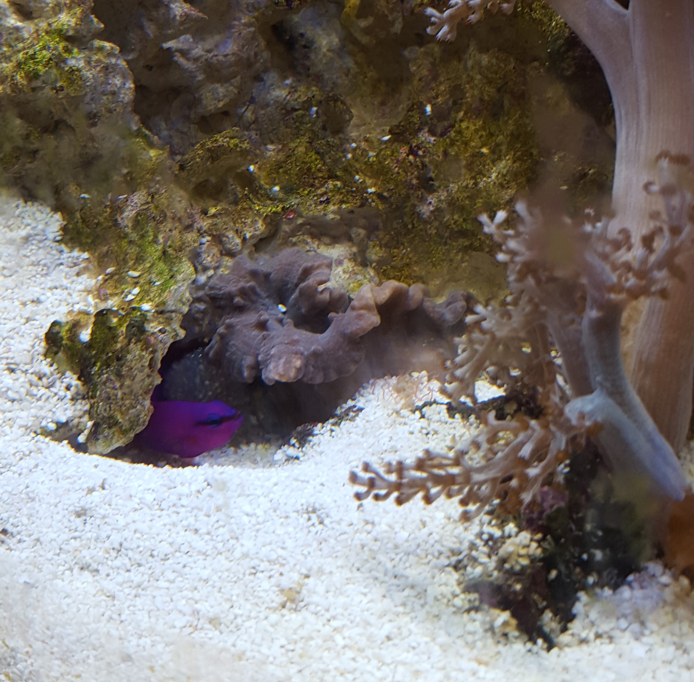 Die Friedmanis haben eine Höhle bezogen und laichen hin und wieder. Die Stonogobiops nematodes und der Alpheus randalli machen viel Freude. Nur mit der Paarhaltung wird es wohl nichts.... Am Anfang waren die Tiere alle zusammen, jetzt hat jeder seine eigene Höhle.