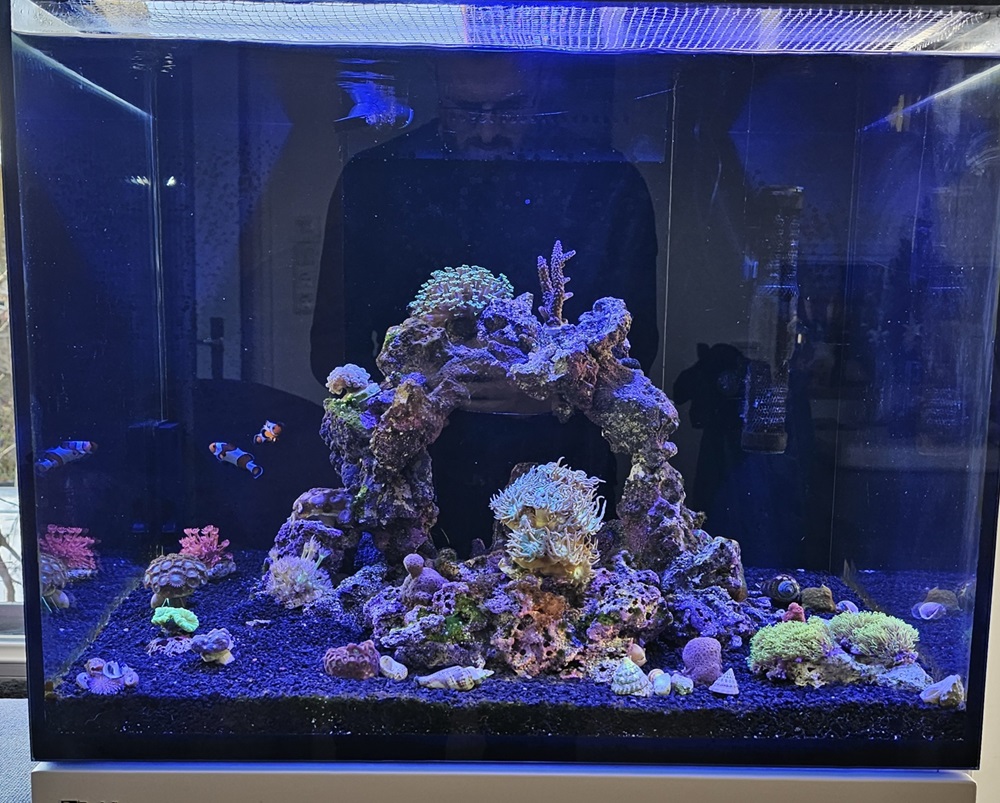 Woche 7 so ich melde mich mal wieder mit einem Update. Wir haben den Besatz des Beckens nun "abgeschlossen" und es sieht wie folgt aus: Fische: 2 x Amphiprion ocellaris (Falscher Clownfisch) 2 x Doryrhamphus excisus (Blaustreifen-Seenadel) 1 x Stonogobiops nematodes inkl. Alpheus randalli...