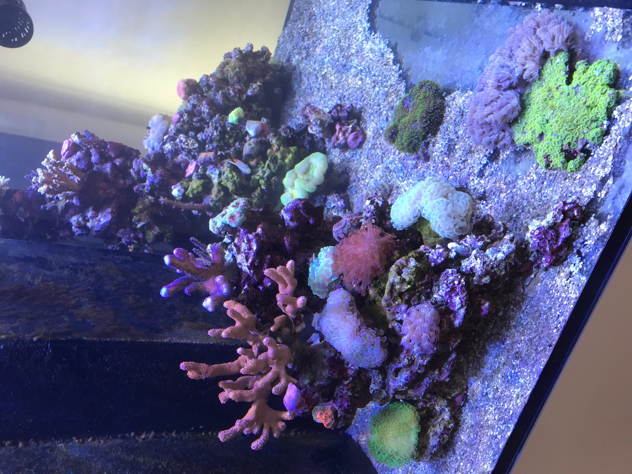 Grundsätzlich stehen die Korallen gut da (bis auf eine Acropora die 2 weiße Spitzen hatte die ich aber entfernt habe). Ich mache mir Sorgen da ja mit den Balance Produkten nicht nur KH und Ca sondern auch andere wichtige Stoffe mitdosiert werden.