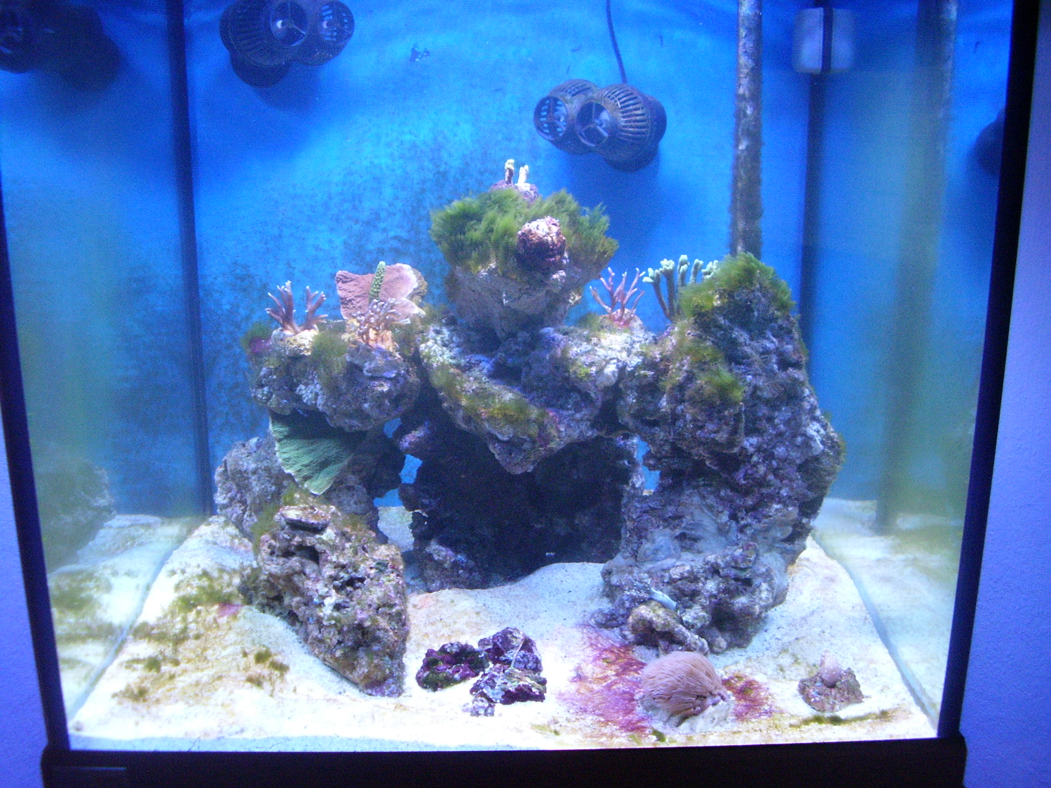Ich habe am 25.6 aufgesalzen. 26.6 den Riffaufbau und den Bodengrund eingebracht und ab dem 28.6 mit sangokai Basic angefangen.