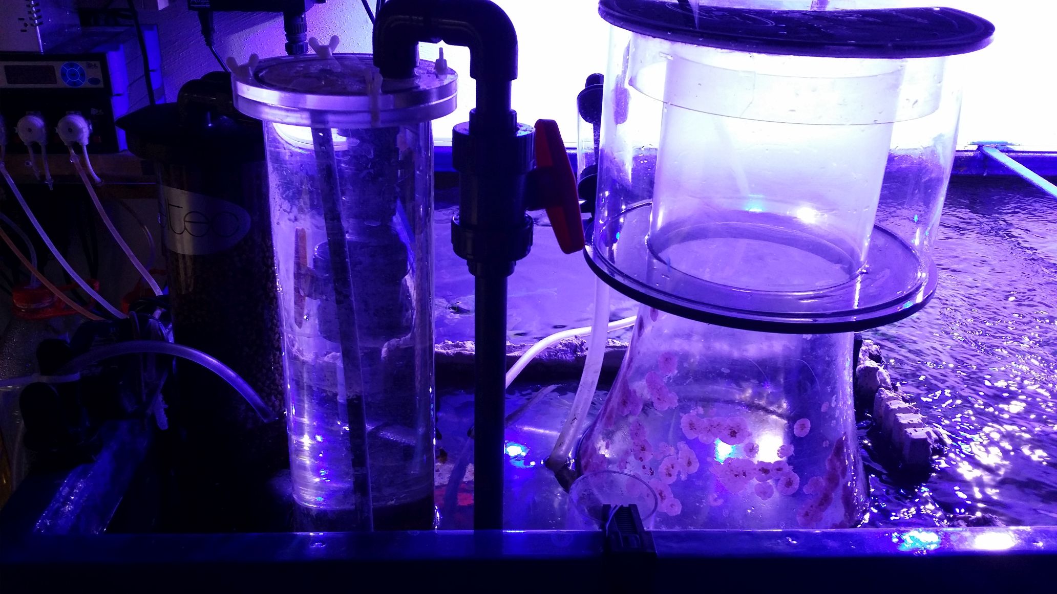 Aktuell, seit 2012 in Betrieb, habe ich ein DIY Holz-Gfk-Becken mit ca. 1500Ltr, Mischbecken, 100% Riffkeramik, Technikabteil in der Riffkeramik integriert, DIY LED mit noch nur ca. 800W (ca 400W sind noch installiert, funktionieren aber noch nicht), ATI Abschäumer PC250i (allerdings mit Royal Exclusive Speedy) und zudem 2 Wirbelfilter mit einmal PO4 Adsorber auf Eisenbasis sowie NP BactoPellets von TM. Beströmt wird das ganze durch eine Abyzz A 200 im Pulsmodus sowie eine alte Tunze 6105 ebenso im Pulsmodus.