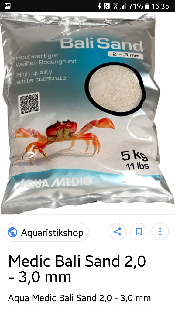 Der Gedanke kam mir eigentlich nur durch ne Probepackung JBL SANSIBAR SNOW, die ich von der optik schon sehr interessant fand - nicht natürlich - aber schön weiss, schön schwer und durchs das Material auch nicht biologisch aktiv, was ja lt. SEAZ nicht unbedingt von Nachteil ist. Natürlich lt.SEAZ viel zu feine Körnung, das weiss ich schon.