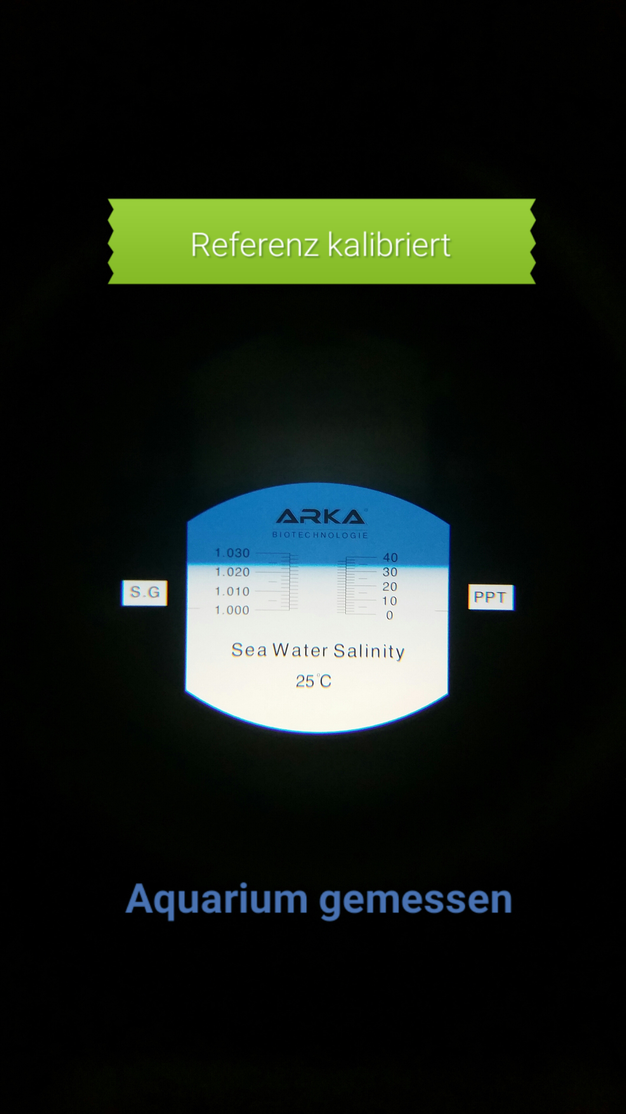Hier zu muss das Refrak gerade gegen eine neutrale Lichtquelle gehalten werden. Am besten ist hier Tageslicht. Meinen Wissens gibt es derzeit nur 2 Firmen die eine richtige stabile Meerwasserreferenz anbieten.