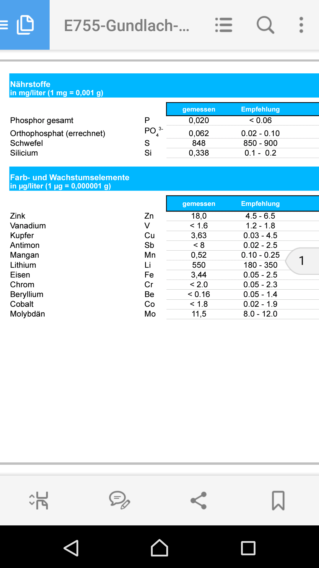 Ich messe immer vor meiner Analyse, Teste zuerst mit Referenz und dann das Beckenwasser. Bei meiner letzten Analyse waren CA und KH aus dem Ruder und deckten sich nicht mit meinem Ergebnissen. Ich will damit sagen das auch bei einer Analyse Fehler passieren können, darum würde ich Claude dazu nochmal kontaktieren, ev. misst er dir die Probe nochmals durch.