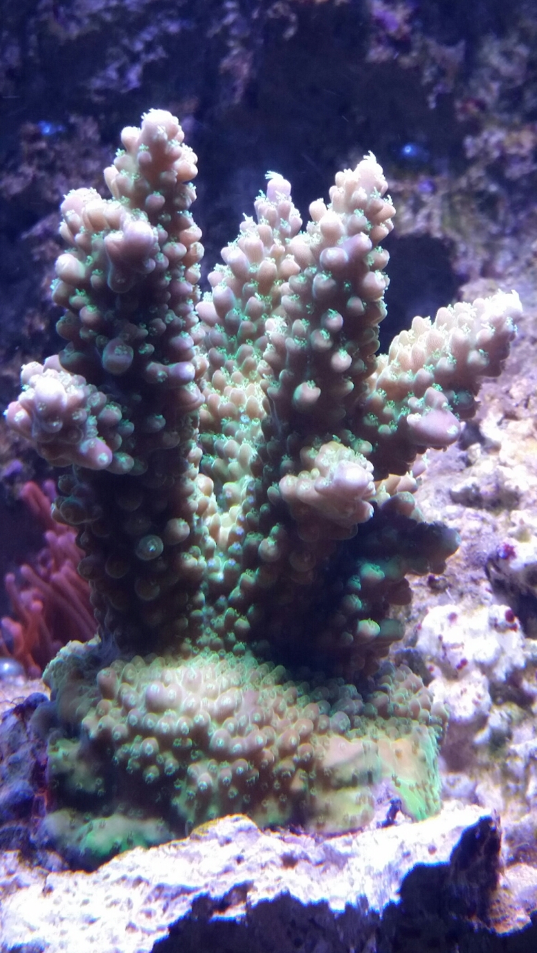 Meine korallen stehen zur zeit eigentlich gut bis auf eine acropora die sich immer noch langsam auflöst.