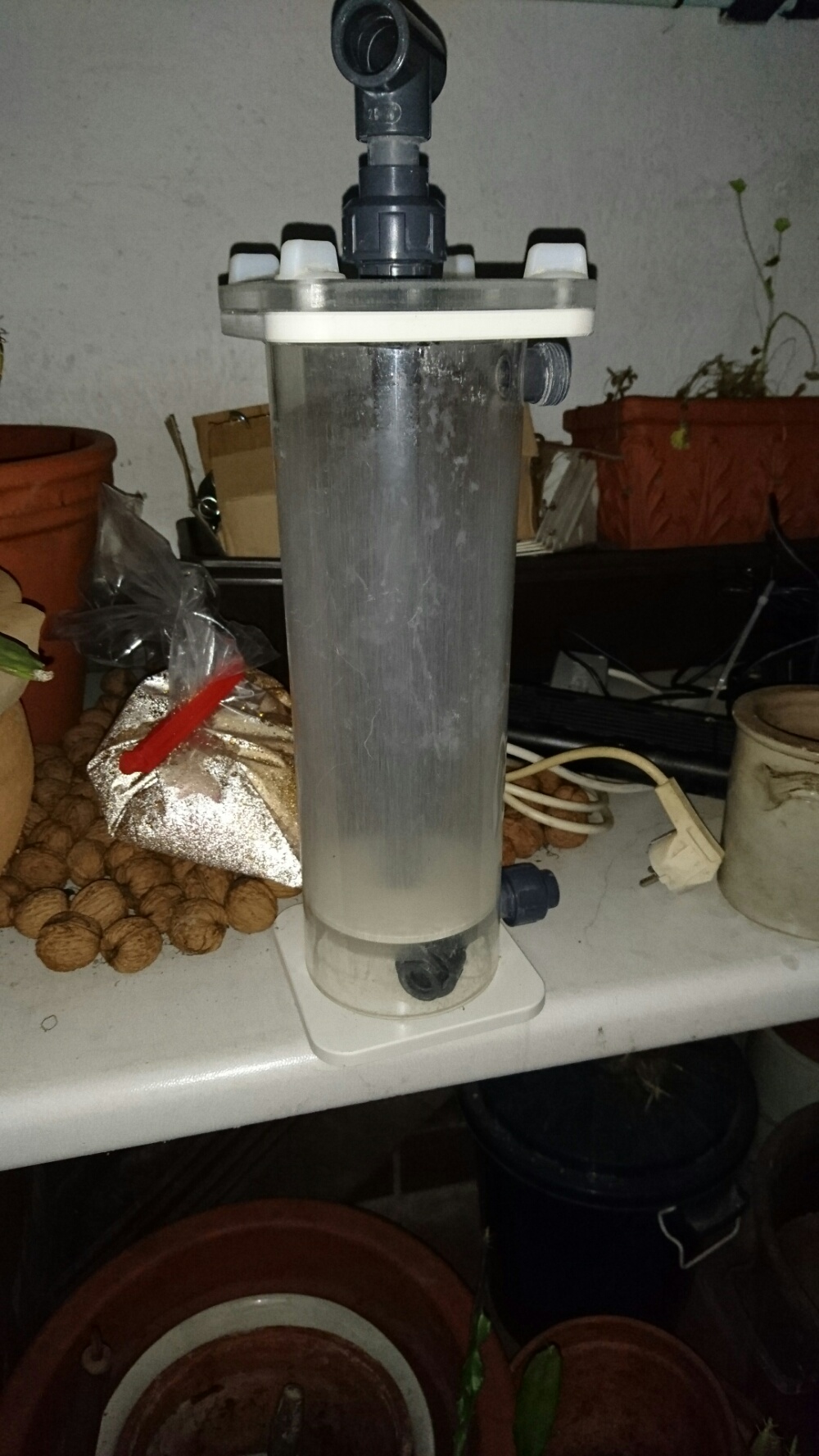 nun habe ich seit einiger Zeit die Aktivkohle über den Zeolithfilter laufen. Ich musste Watte über der Kohle einbringen, weil diese ansonsten im TB gelandet wäre. Funktioniert somit soweit gut.