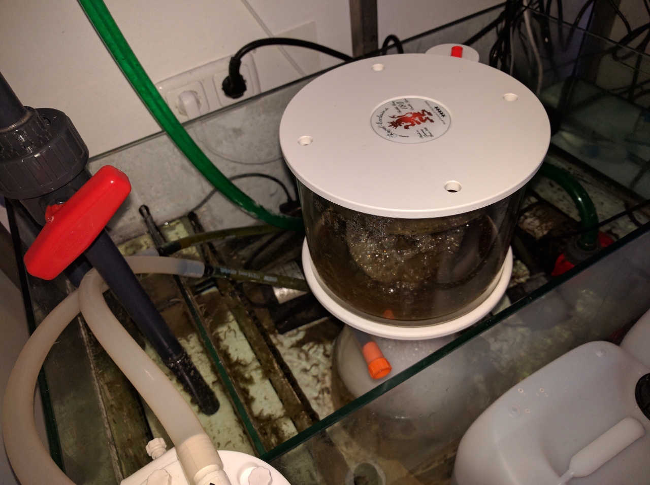 Die Durchflussmenge des Technikbecken könnte ich mir noch mal anschauen. Derzeit läuft meine Royal Exclusive Speedy 3 Red Dragon Pumpe auf 40, von maximal 50, Watt. So recht viel mehr Spielraum nach oben hab ich da leider nicht mehr, kann es aber mal ausprobieren. Mein Abschäumer (Royal Exclusive Double Cone 180 mit RD3 Speedy) läuft auf ca. 25 glaub ich. Oder kurz gesagt: ich wüsste gerade nicht wo ich da noch was optimieren könnte leider.