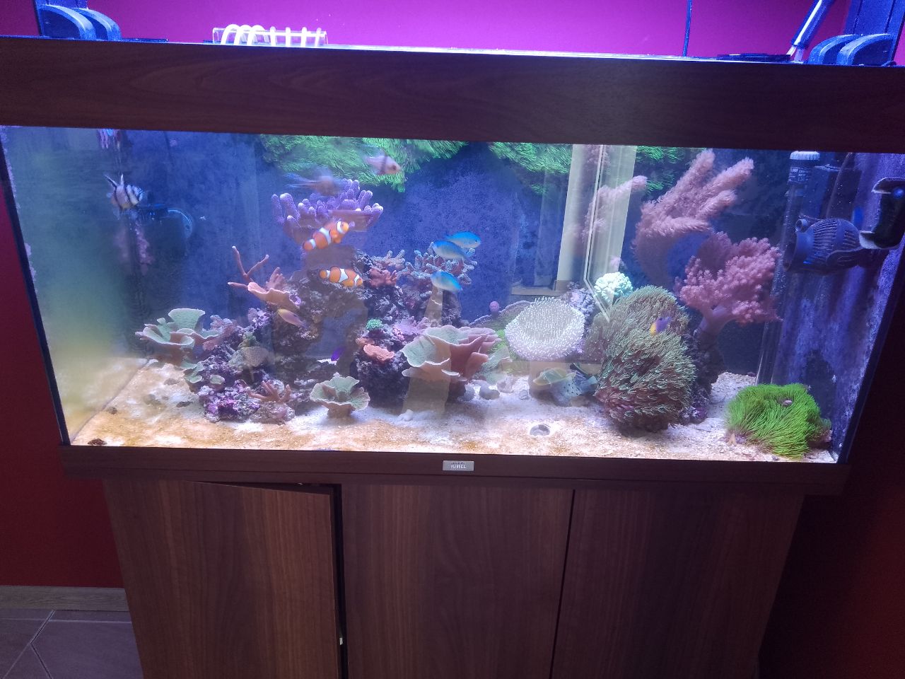 Den Korallen war es, bis auf ein paar SPS wo hie und da ein Algenfetzen sich im Geäst verfangen hat, so gut wie egal und ich habe lediglich die Beleuchtung in der Intensität etwas reduziert und UV (was ohnehin max. 10% war) komplett rausgenommen.