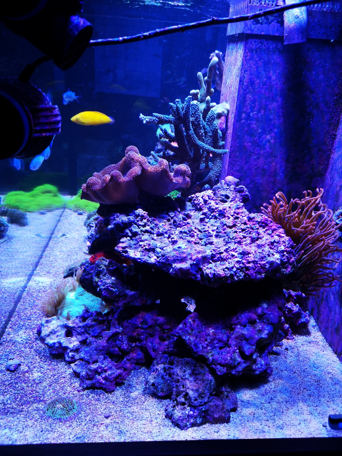 Zusätzlich hast du noch viel freie Fläche. Die sollte mit Korallen als Konkurrenz besetzt werden.