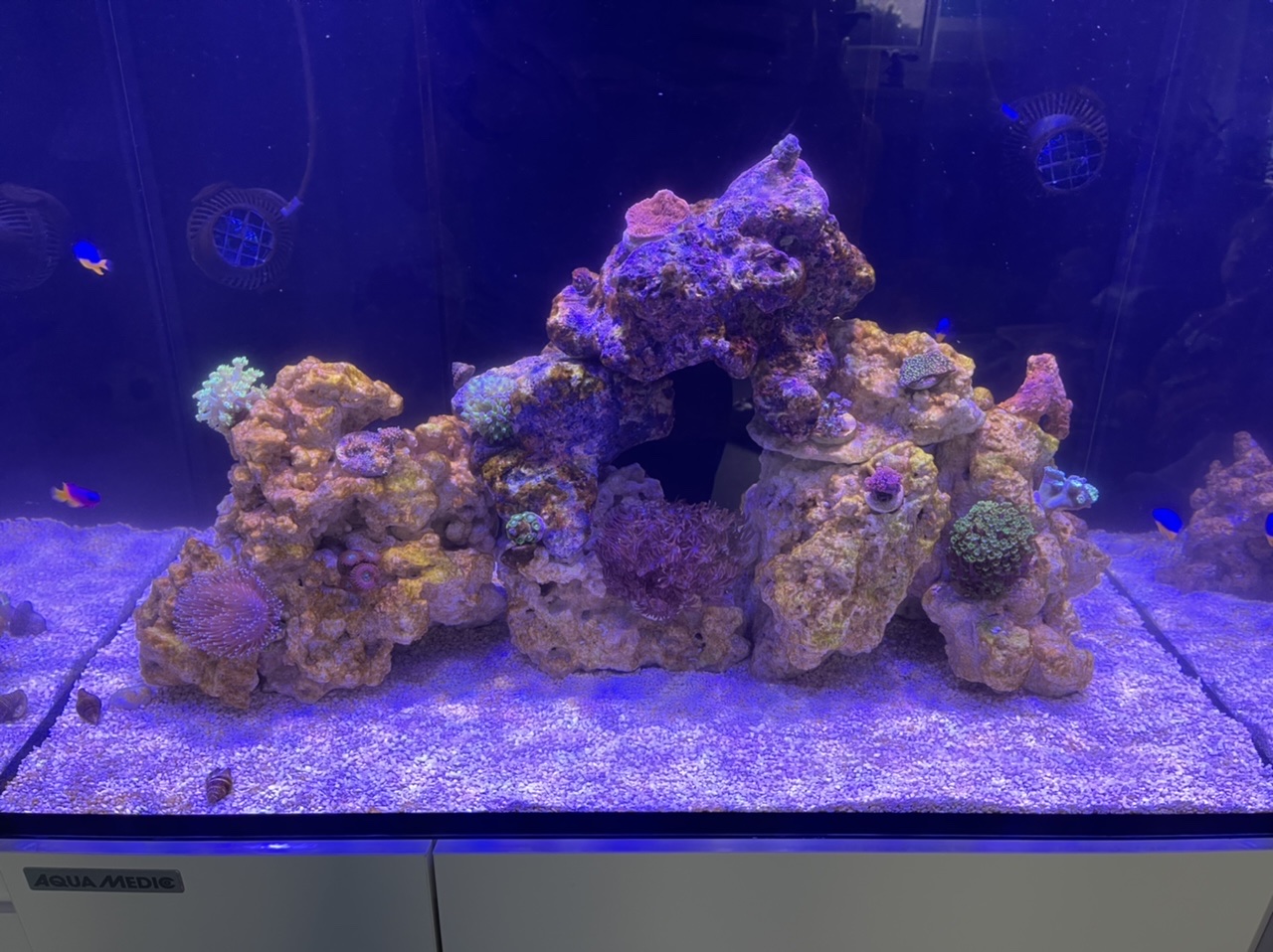 Korallen rein, Fische rein und dann lief es erstmal ohne Algen3 Wochen weiter.