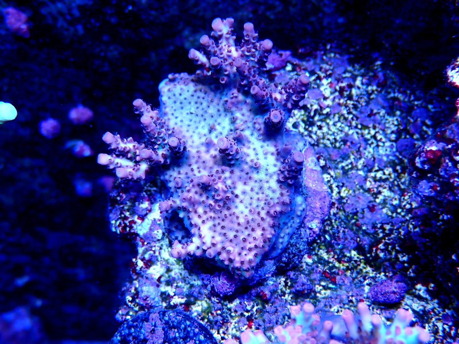 Heute hab ich die nächste Acropora entdeckt, die von unten her weiß wird. Ich gleich alle wichtigen Werte gemessen: