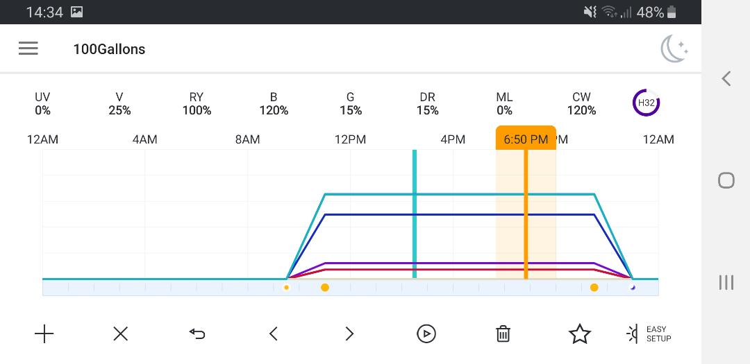 Schonmal vielen Dank für den Tipp, werde ab Mittwoch den Bais-Plan starten. Anbei folgen noch die Bilder vom Spektrum der Lampe. Sie läuft von 10 Uhr bis 21 Uhr mit 30 Minuten Aufgang und Untergang.