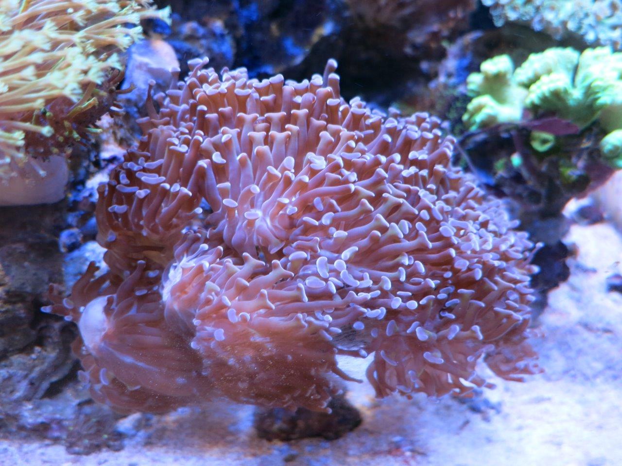 Eigentlich fühlt sich die Euphyllia sonst wohl, sie hat immer ihre Polypen auf. Sie steht schon von Anfang an (seit 1,5 Jahren) an dieser Stelle, die Strömung habe ich auch nicht verändert. Diese ist auch dort nicht besonders stark. Nachts schließt sie sich ganz normal und die Blasen sind dann nicht zu sehen. Nur habe ich sie jetzt schon zweimal geteilt und Ableger von gemacht (aber an anderer Stelle), weil sie sonst zu riesig geworden wäre. Wasserwerte sind in Ordnung.