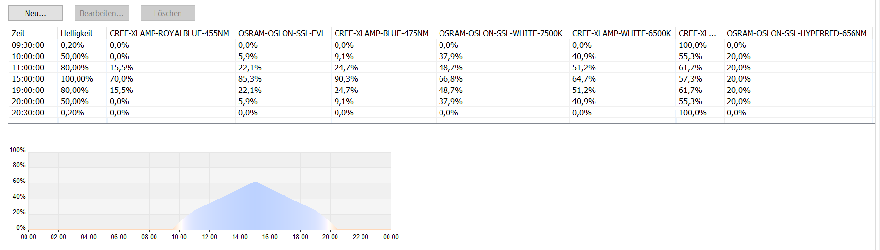 Welchen tagesverlauf bzw. Lichtfarbe?