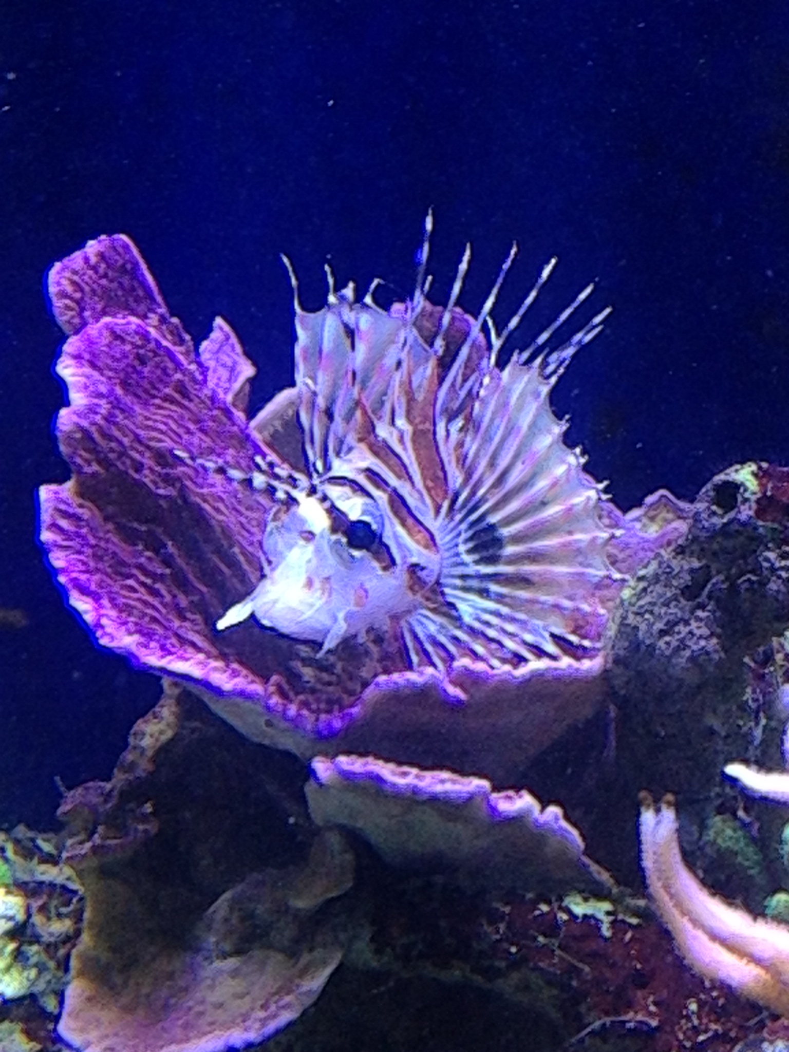 Hm, bei den seitlichen Flossen sind beim Pterois mombasae so lange Fühler dabei, das hat meiner nicht. Und bei den anderen FeuFi Arten passt die Zeichnung nicht mit dem von mir zusammen. Dann wird es wohl der zebra sein... Wenn er aufgefüttert ist, wird er vielleicht mehr Farbe bekommen, dann wird es leichter zu bestimmen sein.