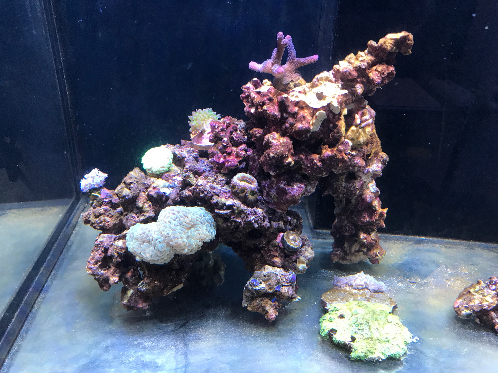 das sieht gut aus! Lass dem System Zeit sich zu stabilisieren. Wichtig ist dabei das Becken schnell zu besetzen, vorallem mit Korallen. Somit schaffst Du eine Konkurrenz zu den Algen. Wenn diese dann wachsen und Nährstoffe ziehen fängst Du an deinen Fischbesatz aufzustocken. Sollten danach nochmals diese Algen auf den Steinen auftreten würde ich diese dann nochmal absaugen. Wie gesagt, lass aber dem System erstmal Zeit.