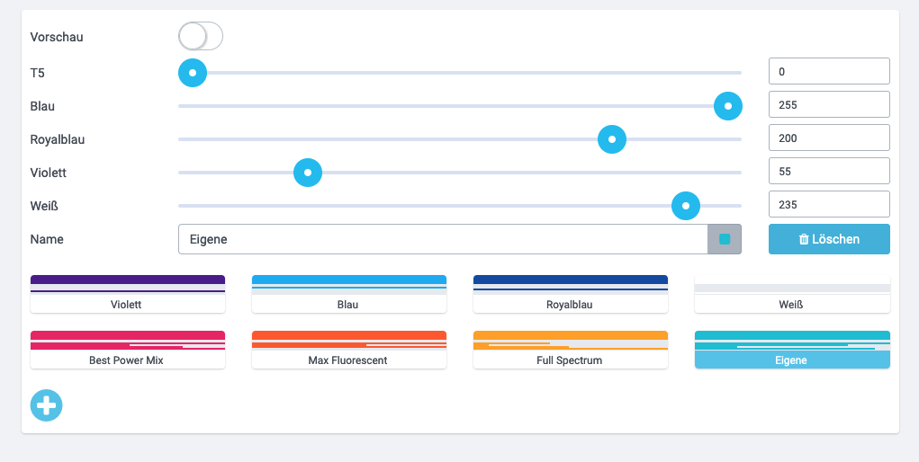 Warum beleuchtest Du dein Becken nur 9 Stunden? Gehe da auf jeden Fall höher. Ich wurde auch die T5 auf 100% fahren. LED Intensität kannst du mal so lassen; eine Glockenkurve bei den LED Einstellungen solltest Du umsetzen.