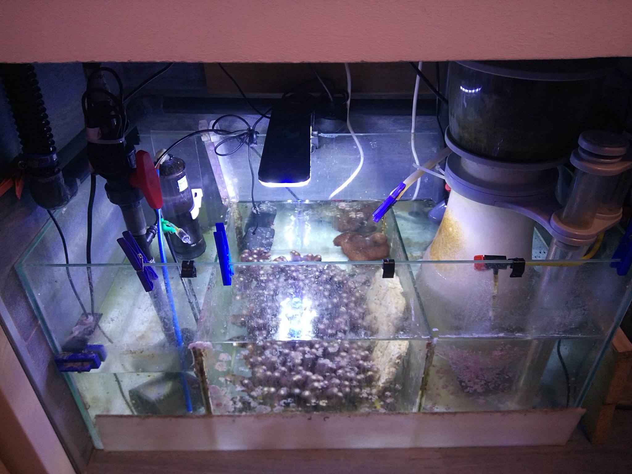 bisher habe ich die klassische Methode angewandt, 10%WW alle 10 Tage, Kalkreaktor, hin und wieder Zusätze von Redsea dossiert.