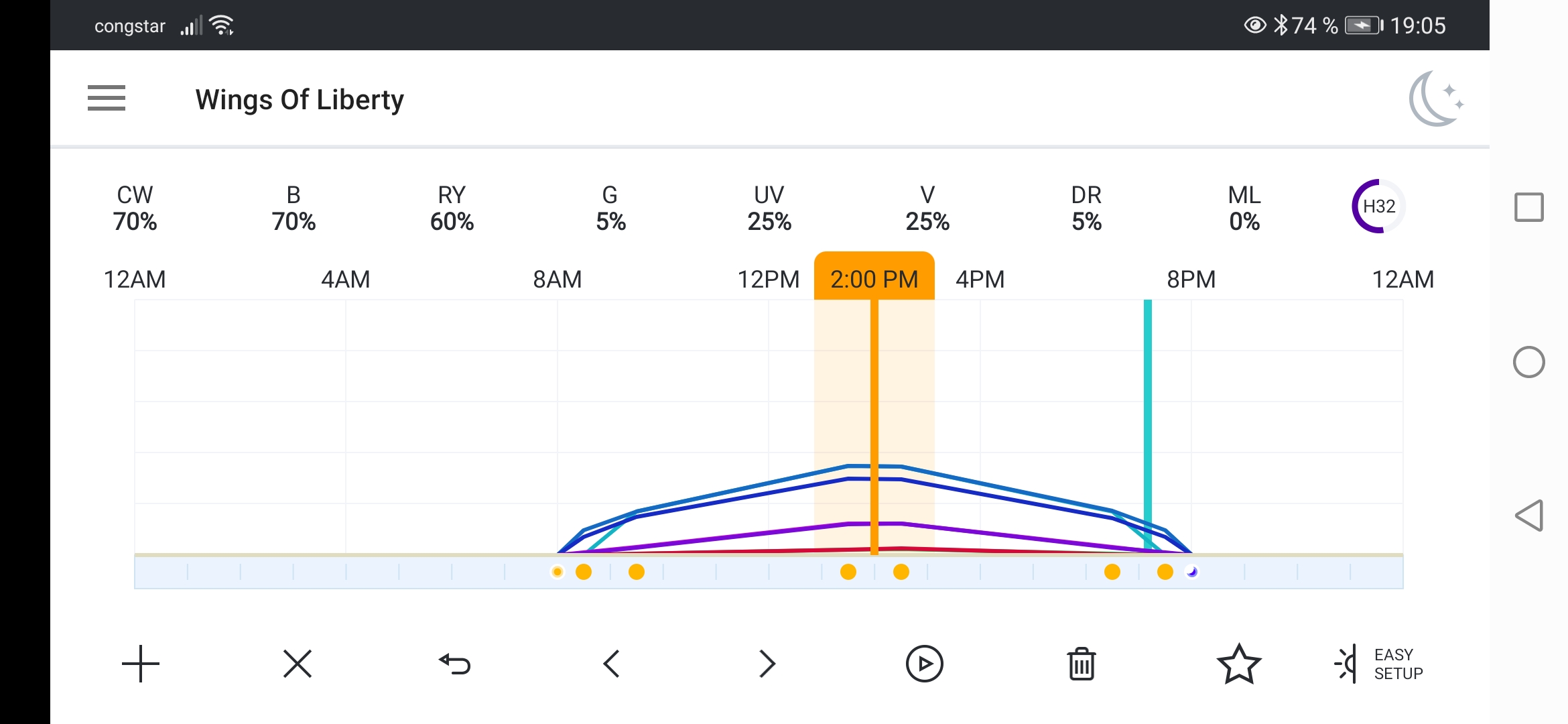 Anbei auch die Einstellung meiner Beleuchtung wie ich sie im Moment habe. Die angezeigten Werte sind das Maximum. Diese werden für eine Stunde gehalten. Und die letzte ICP.