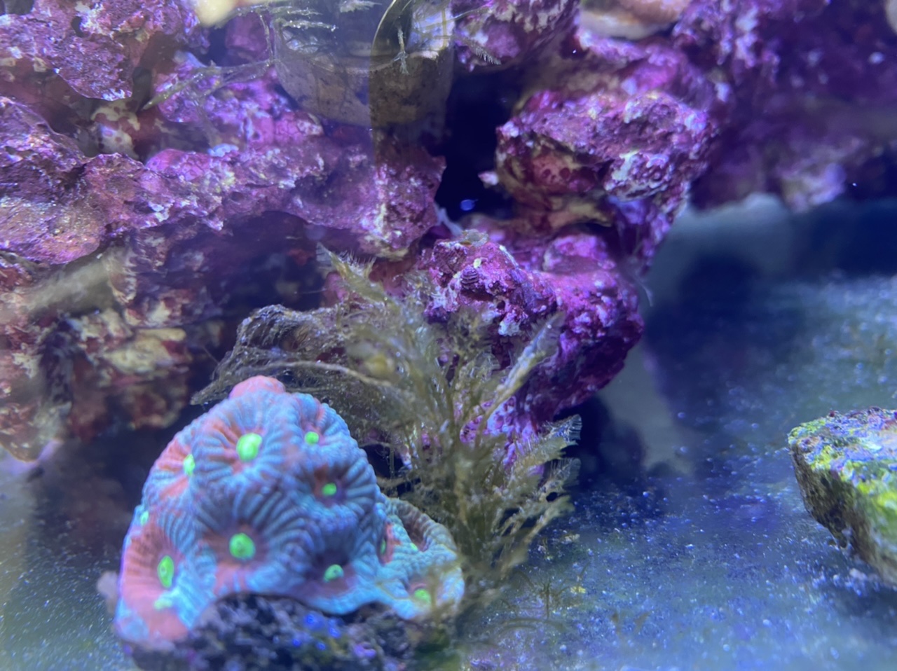 heute sieht die Welt wieder anders aus. Die Euphy und auch die Anemone stehen bspw. wieder bestens da! Ich hänge mal Bilder an, unter anderem auch ein Detailbild der Algen an einem Stein.