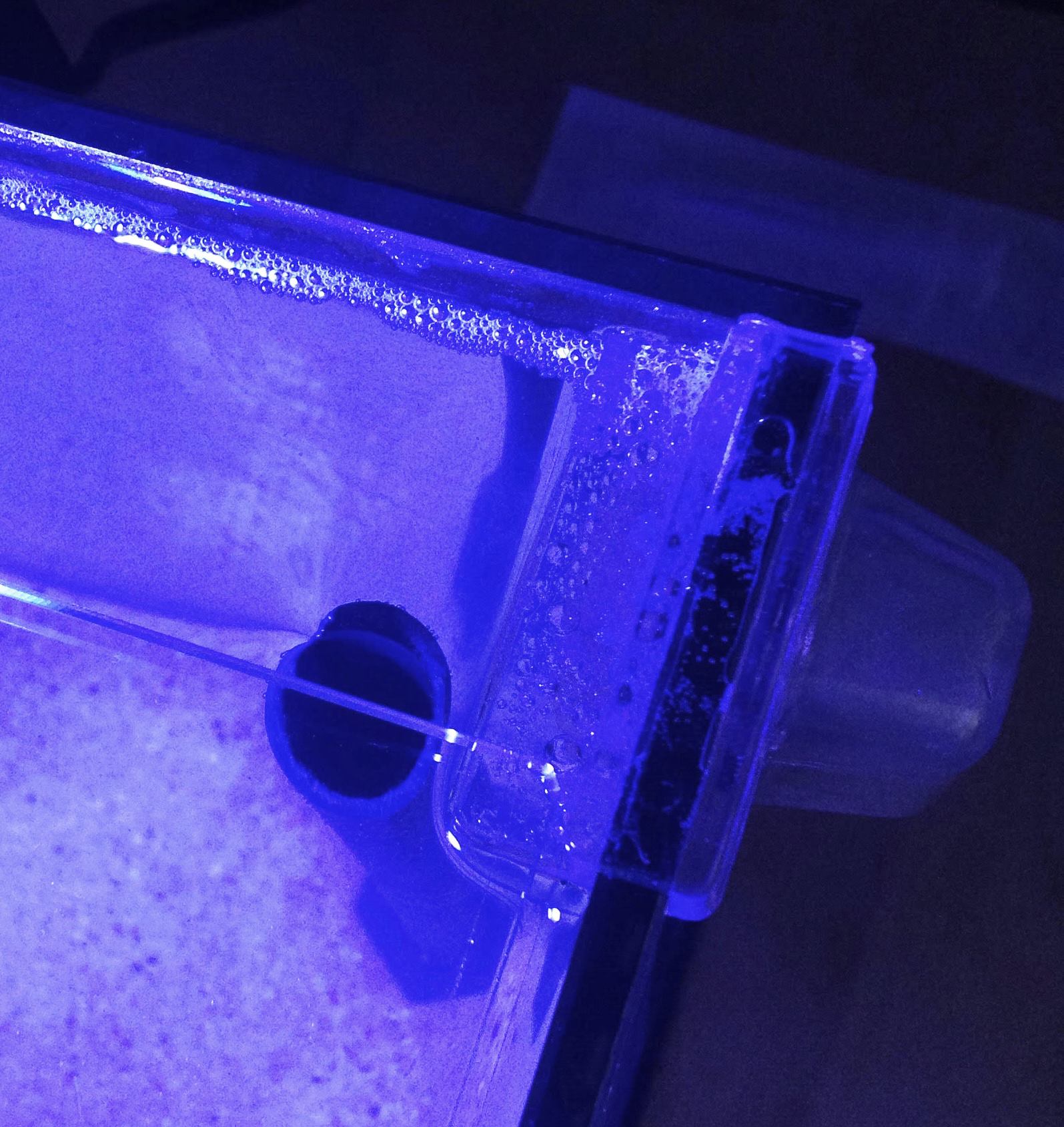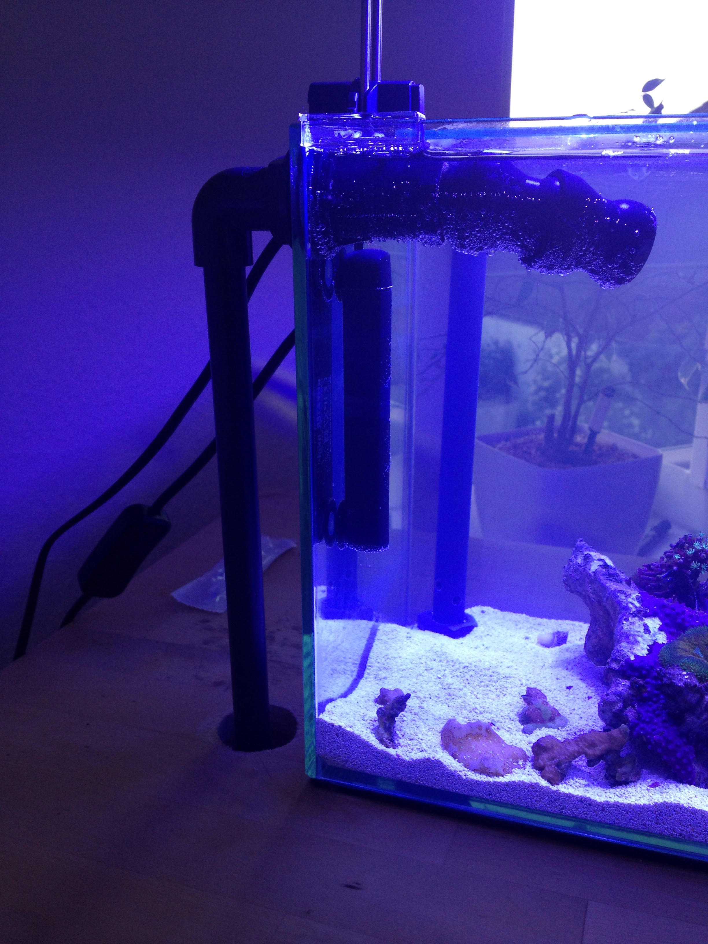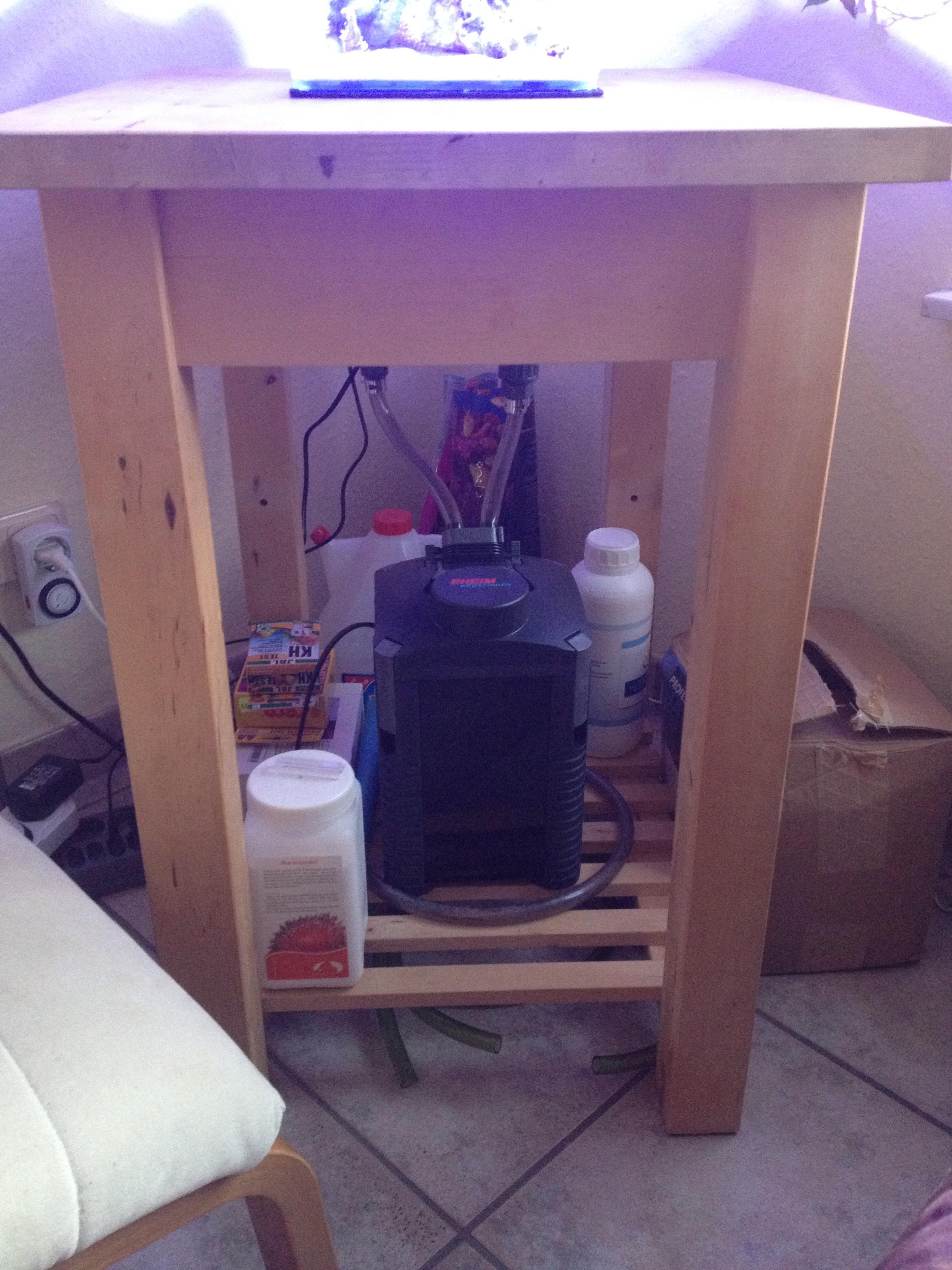 Jetzt habe ich ein komplett lautloses 10L Becken mit Topffilter unter dem Tisch.
