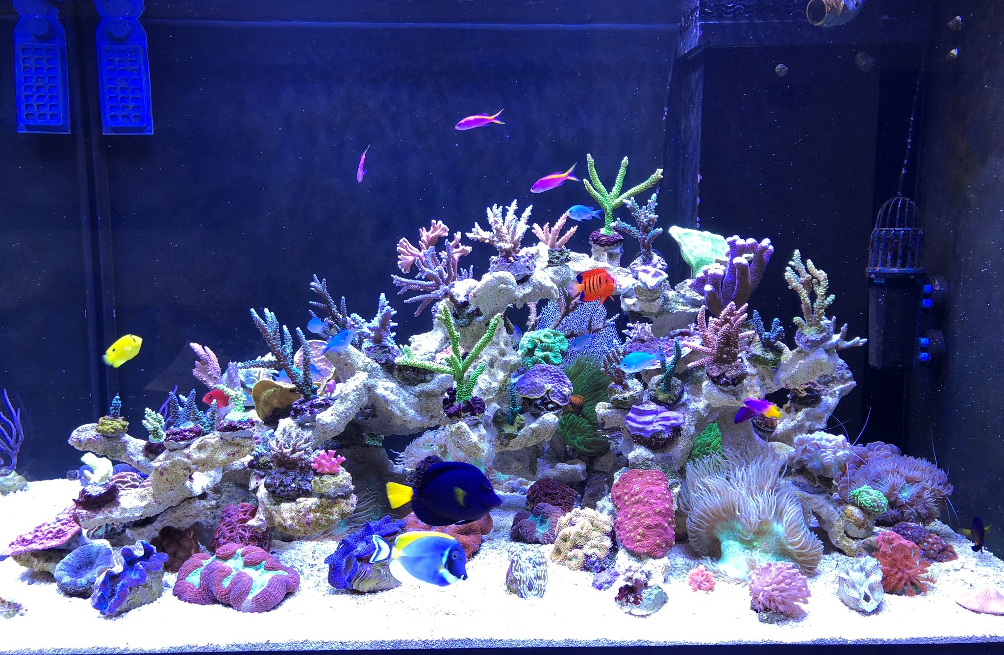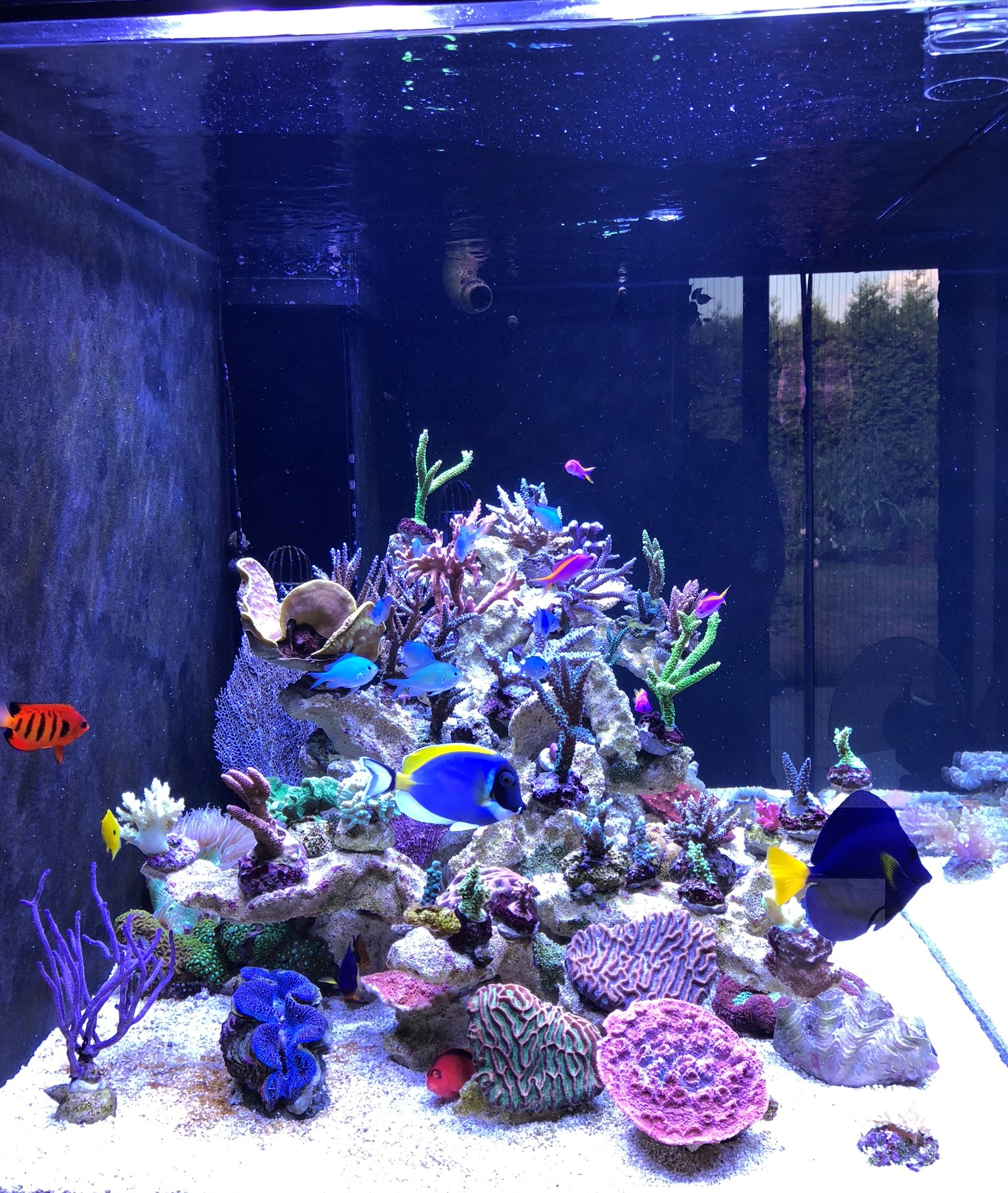 Becken steht jetzt seit Mai und wurde "langsam" hochgefahren, erste Fische und Korallen nach Woche 1.