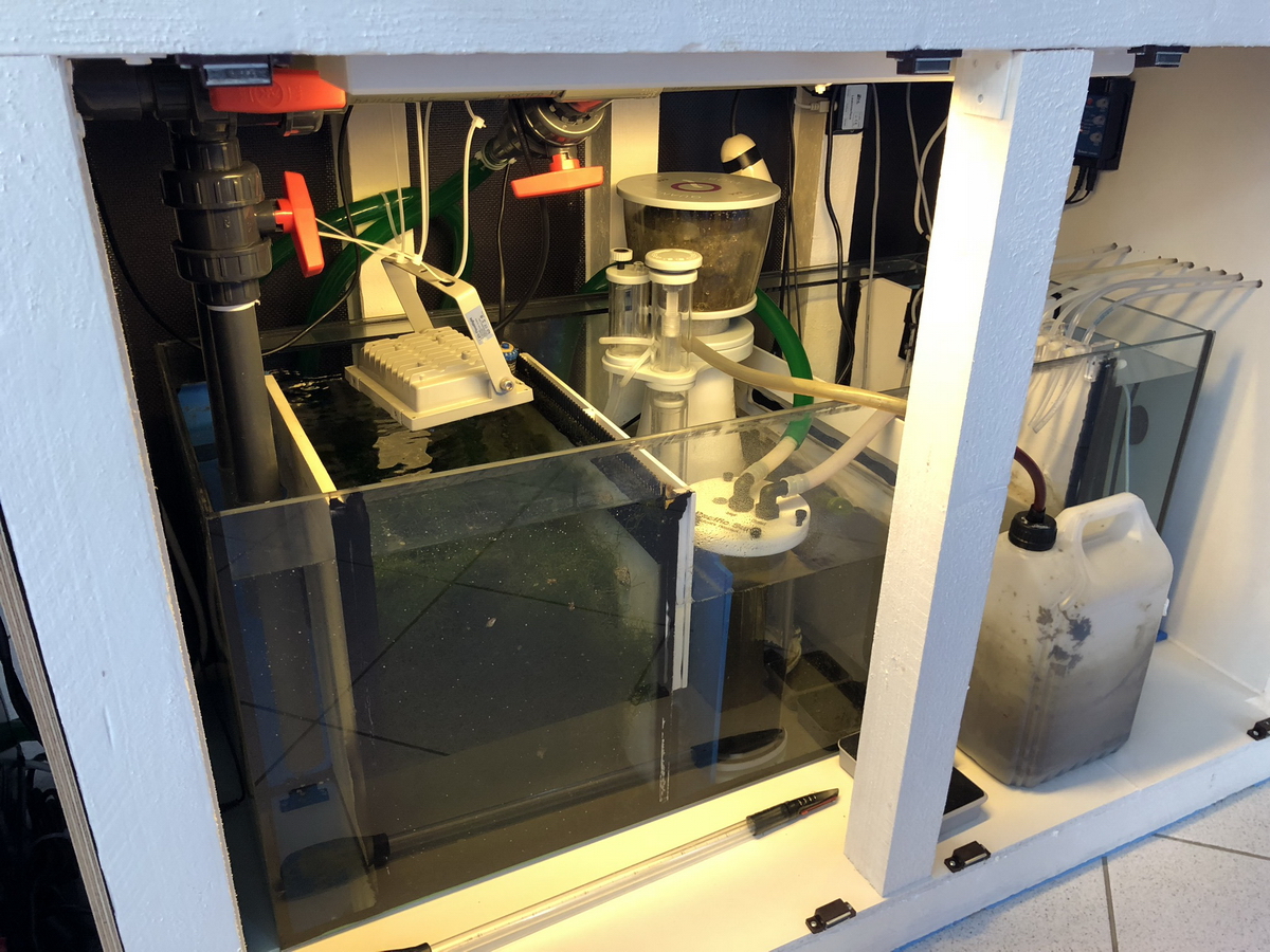 Aktuell läuft das Ganze mit Triton aber ohne Phosphatabsorber (war auf 0) nur Kohle und Refugium.