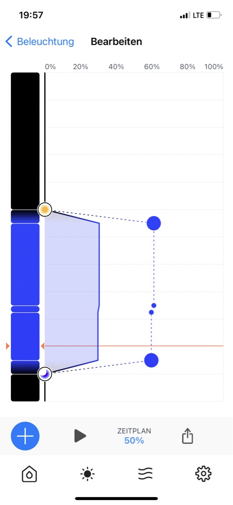 Beleuchtung: Ecotech Radion XR15 G5 Blue mit Diffusor 12 Stunden davon 1 Stunde Sonnenaufang und 1 Sonnenuntergang maximal Leistung 50%