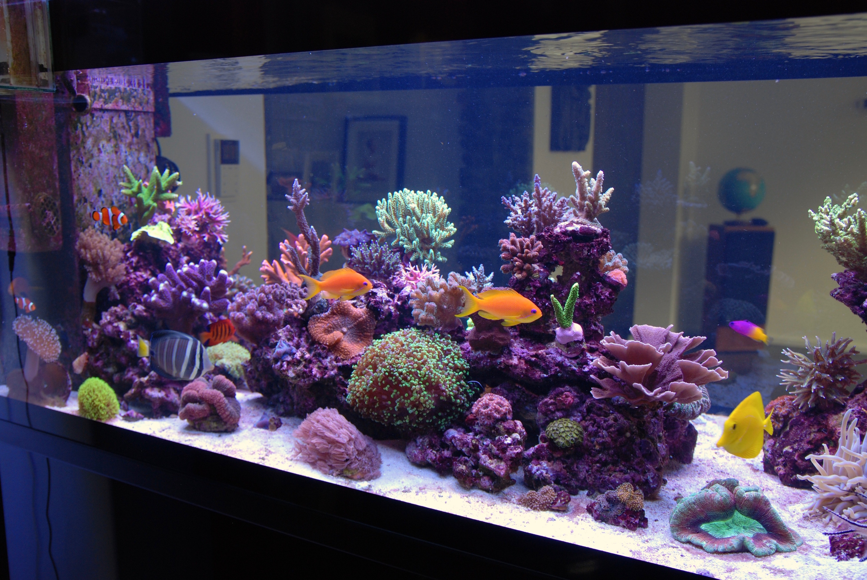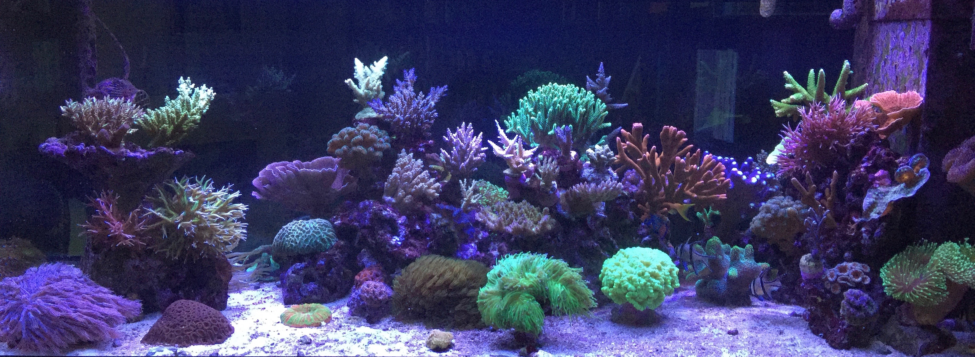 kurzes Update von meiner Seite. Trotz der kurzen Zeit seit meinem letzten Update hat sich einiges getan. Das Wachstum ist nachwievor sehr gut. Einige Korallen habe ich umgesetzt und ein paar neue Tiere sind auch eingezogen. Das Becken steht nachwievor sehr gut, auch wenn ich zur Zeit mal wieder einige Cyanos auf den Steinen habe.