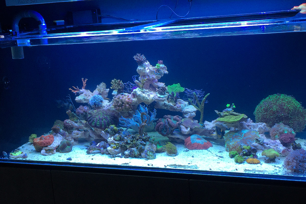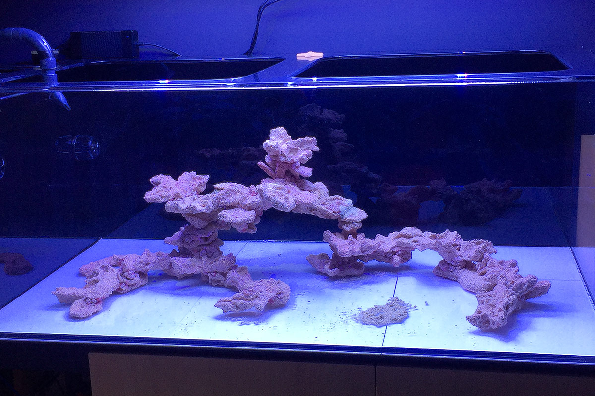 Korallen wurden pö a pö nach vier Tagen eingebracht. Fische kamen nach etwa 7 Tagen dazu.
