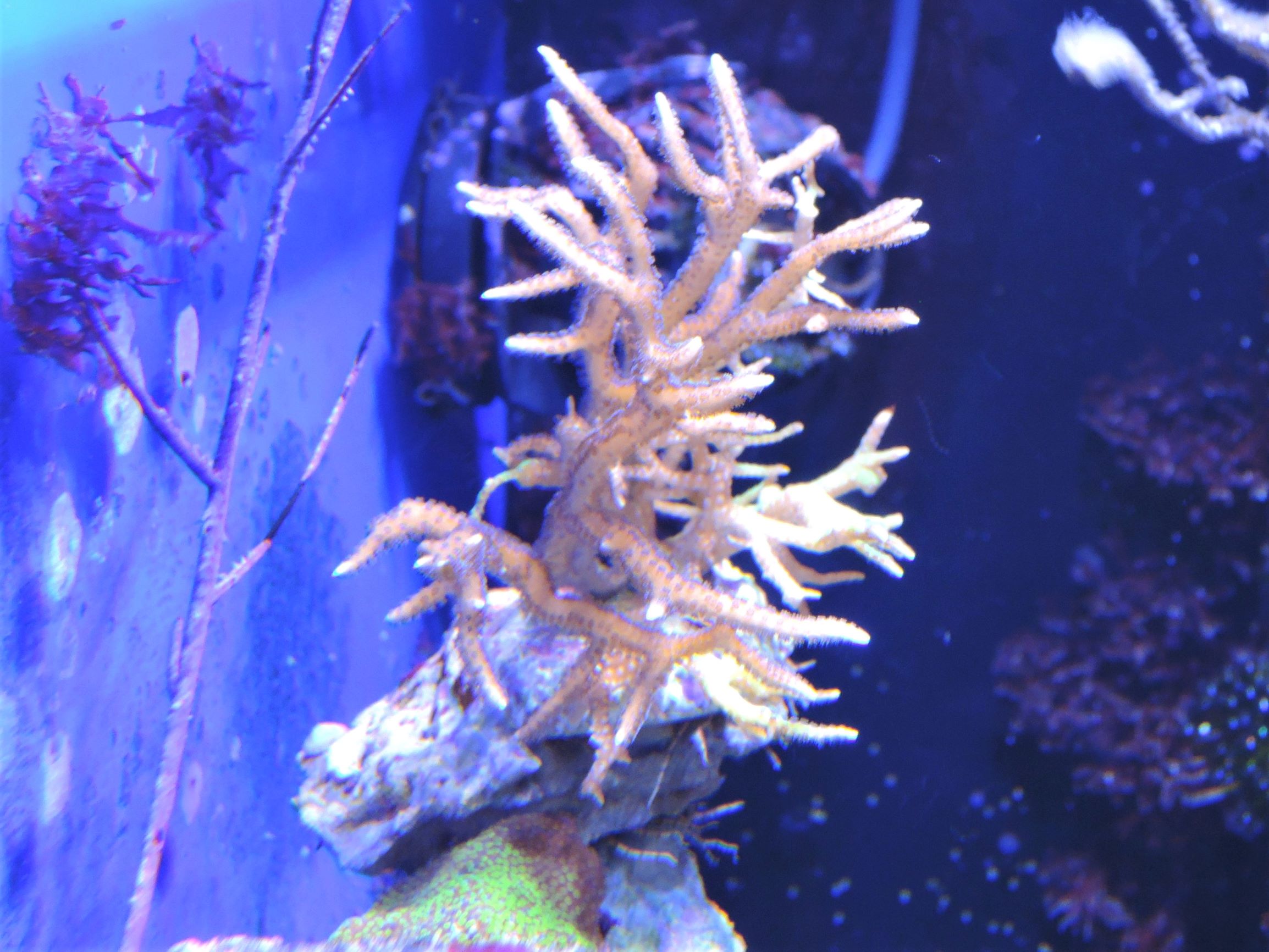 Eine Pocillopora ist in der Zwischenzeit leider gestorben, alle anderen Korallen leben noch. Farblich sehen sie allerdings nicht so schön aus.